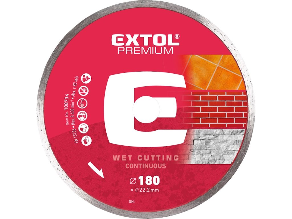 Oštrica za rezanje dijamanata - mokro rezanje, 180 × 22,2 × 2,5 mm