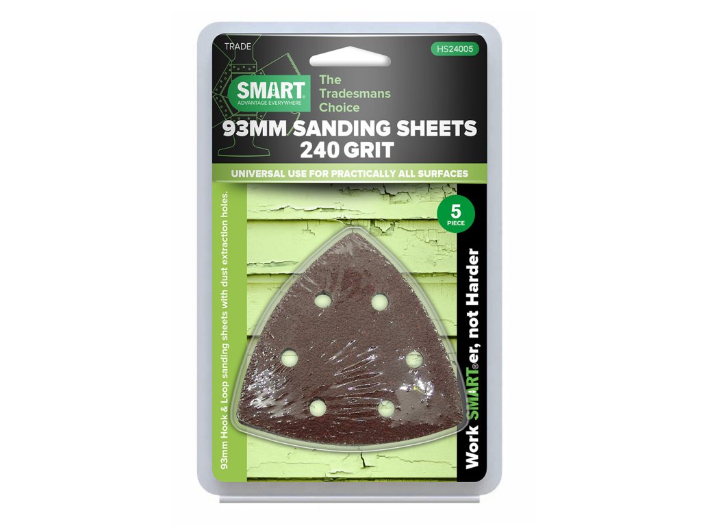 Brusni papir proizveden u Velikoj Britaniji. Pogodno za obrtnike i "uradi sam". S rupama za izvlačenje. Idealno za brušenje drva i uklanjanje boje. Hrapavost 240. Duljina ruba 93 mm. Marka SMART proizvodi neke od najboljih lopatica za višenamjenske oscilirajuće pile na svijetu i jedina je marka na tržištu koja nudi kombinaciju prilagođenih noževa s patentiranim STARLOCK nastavkom.