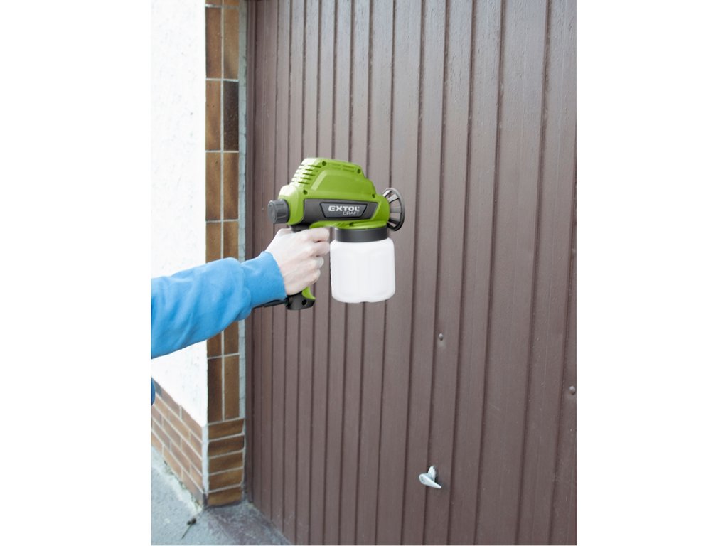 Lagani pištolj idealan za zahtjevnije prskanje boje kod kuće, u kućici ili u vrtu. Veća snaga omogućuje korištenje gušćih vrsta boja ili manje razrijeđenih boja, što može ubrzati rad. Namijenjen je nanošenju boja i lakova koji sadrže otapala, boja na bazi vode, uljnih boja, glazura, akrilnih pigmentnih lakova, mrlja, konzervansa i dezinficijensa za drvo i biljke.