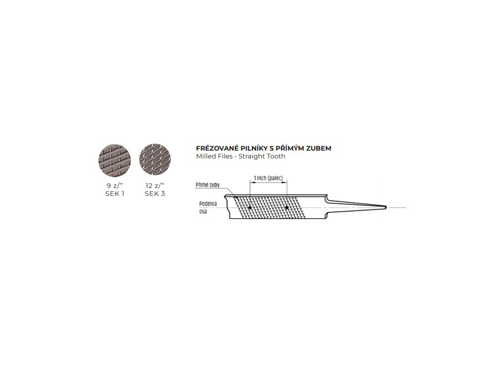 Plosnato mljevena datoteka, 250 mm, 25 × 6 mm, ravni zubi, s 3