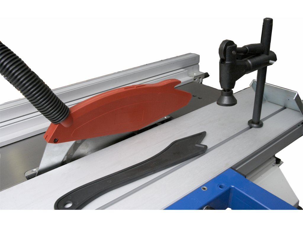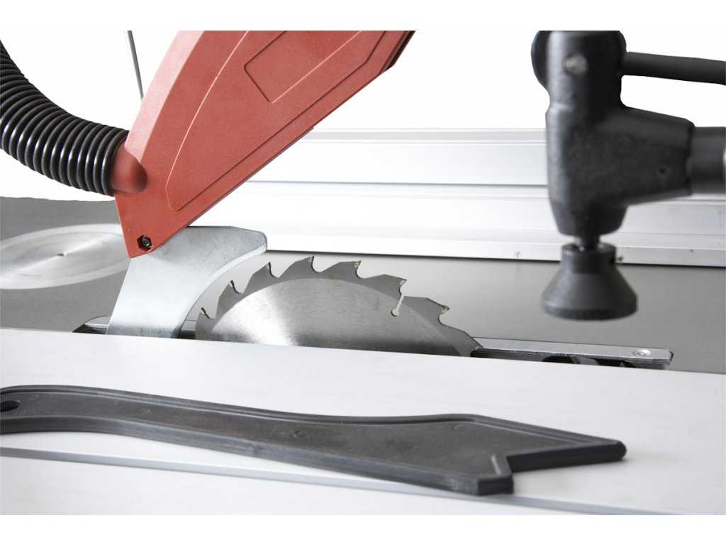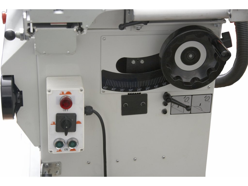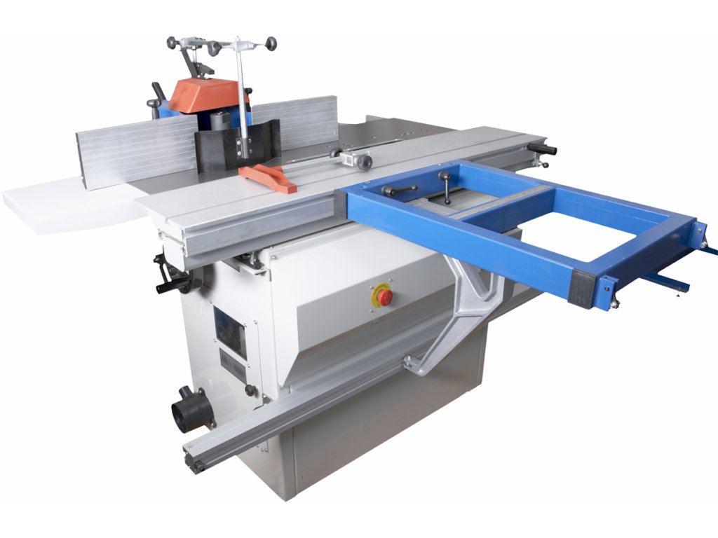Stroj koji kombinira i pouzdano zamjenjuje kružnu pilu jedinicom za bodovanje i kalupom za vreteno. Metalni vodilica ravnala. Opremljen je promjenjivim sustavom zaštitnih poklopaca i tlačnih elemenata. Naginjanje lista pile. Kružna pila: Napajanje 400 V, potrošnja energije 3.000 W, dimenzije noža 250 × 30 × 3,2 mm (24 t), brzina 4.050 o / min, rezanje 65 mm pri 90 ° i 45 mm pri 45 °, dimenzije stola 1.200 × 840 mm. Hod stola 1.400 mm. Jedinica za bodovanje: oštrica 80 × 20 × 3,2 mm, brzina 6.300 o / min (8t), promjer mlaznice za ekstrakciju 100 mm. Kalup vretena: Potrošnja energije 2.200 W, brzina 3.500/5.500/7.000 o / min, stezanje ø 30 mm, maksimalni alat ø 140 mm, maksimalna visina glodanja 100 mm, promjer mlaznice za ekstrakciju 100 mm.