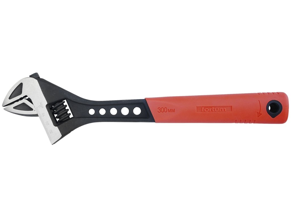 Veća sigurnost - Patentirano glodanje donjeg dijela čeljusti radikalno smanjuje klizanje i tako uništava matice. Lako može držati čak i oštećeni vijak. Širi otvor čeljusti - Do 20% veći raspon čeljusti od konvencionalnih ključeva iste veličine. Laserski ugravirana, lako čitljiva metrička skala. Lakša težina - Kovani profil čeljusti s trokutastom geometrijom i osovinom perforiran kružnim rupama na principu grede - oba za maksimalno osvjetljenje uz održavanje stopostotne čvrstoće. Veća učinkovitost - Fortum ključevi su jedini na tržištu opremljeni asimetričnim (trapezoidnim) navojem, što omogućuje do 60% bolje zatezanje čeljusti. Istodobno, sprječava spontano otpuštanje ključa i, naprotiv, olakšava rukovanje prilikom otvaranja. Veća udobnost - Nagib čeljusti od 15° u odnosu na os ručke smanjuje umor tijekom rada što je više moguće. Veća trajnost - Silikonska TPE gumena ručka posebno je razvijena da bude izuzetno otporna na organska i anorganska otapala, ulja i druge agresivne tvari. Bolji kontakt - Visoko prianjanje materijala zajedno s ergonomski postavljenim urezima sprječava klizanje ručke čak iu masnim ili vlažnim okruženjima i jamči maksimalan kontakt s alatom. Veća sigurnost - Igla izrađena od kaljenog polipropilena osigurava ručku od klizanja ili klizanja.