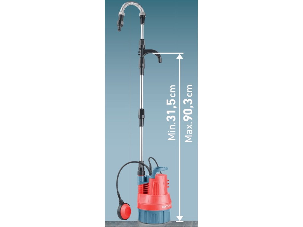 Bačvasta pumpa dizajnirana je za crpljenje čiste vode iz kišnica, a zahvaljujući visini pražnjenja od 11 m dobiva vodu na cijelom području kućnog vrta. S bačvastom pumpom nema potrebe nositi teške limenke za zalijevanje za zalijevanje, na vrtno crijevo mogu se spojiti razni dodaci za navodnjavanje i prskanje / zalijevanje, a pomoću prskalice na štapiću možete udobno zalijevati cvijeće u saksiji u visini, magliti cvijeće ili koristiti pribor za prskalice za zalijevanje travnjaka za korištenje kišnice za zalijevanje travnjaka. Čvrste nečistoće maksimalne veličine 1 mm prolaze kroz crpku. Na izlazu crpke nalazi se fleksibilno metalno crijevo i ventil koji se po potrebi može koristiti za podešavanje protoka vode. Pomoću prekidača plovka možete postaviti odgovarajuću razinu vode u cijevi, a kada se dostigne ta visina, prekidač automatski isključuje crpku i štiti je od oštećenja pri suhom radu. Kako bi se pojednostavio rad, crpka ima modularnu aluminijsku cijev s kukom u rasponu od 31,5 - 90,3 cm na izlazu i može se objesiti u bačvu. Crpka je dizajnirana za pumpanje čiste servisne vode bez mehaničke kontaminacije.