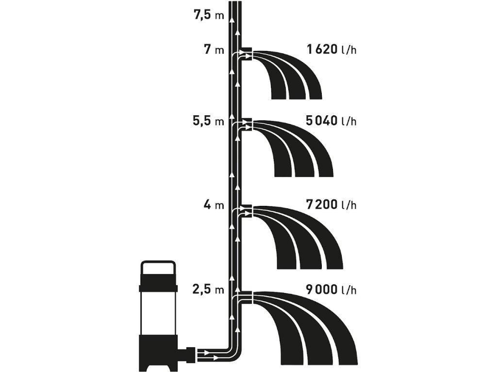 - maksimalna brzina protoka: 9000l/h, 150l/min