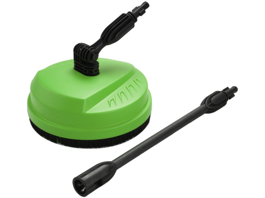 Pogodno za rad u vertikalnim i horizontalnim položajima, integrirani štitnik za prskanje. Možete ga koristiti za čišćenje površina od prirodnog kamena, betona, pločica, drva itd. Vođenje čistača tijekom rada olakšano je takozvanim efektom uzgona, koji nastaje rotirajućim mlaznicama i vodom pod tlakom. Maksimalni tlak 70 bara.