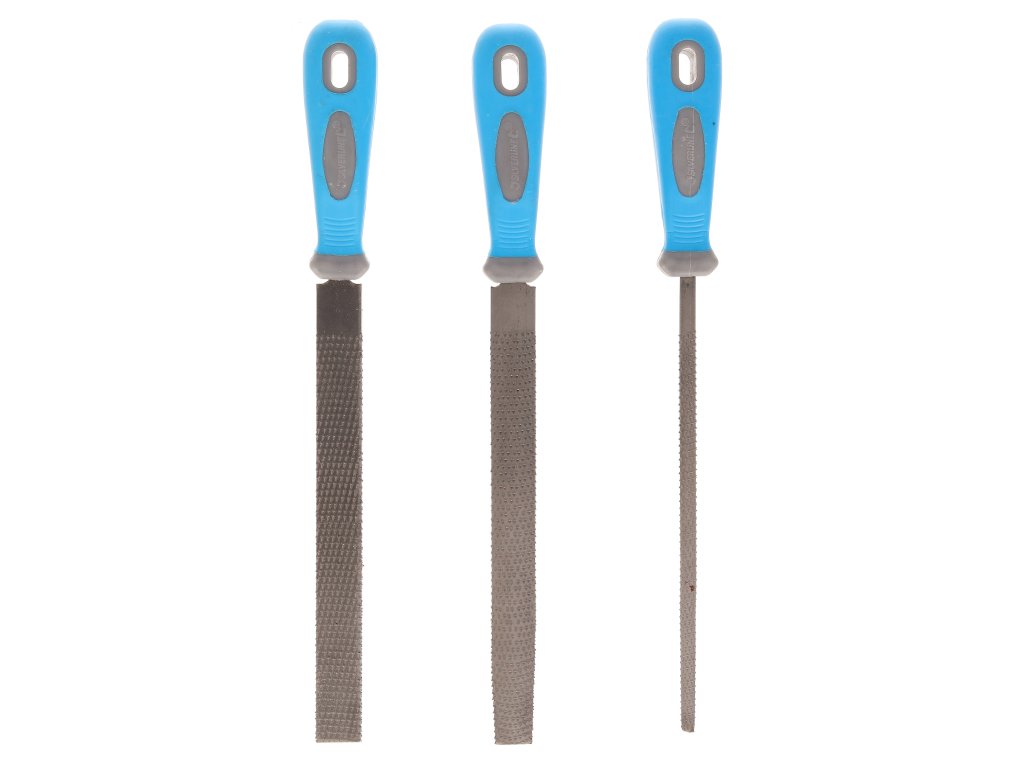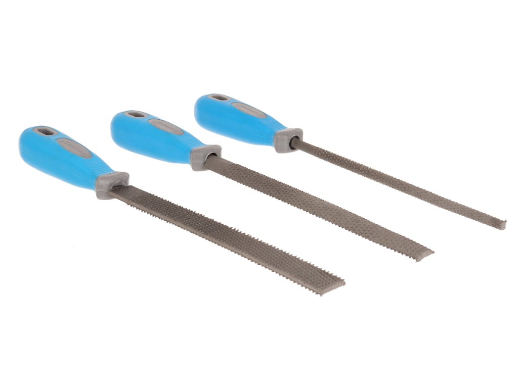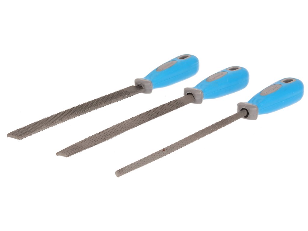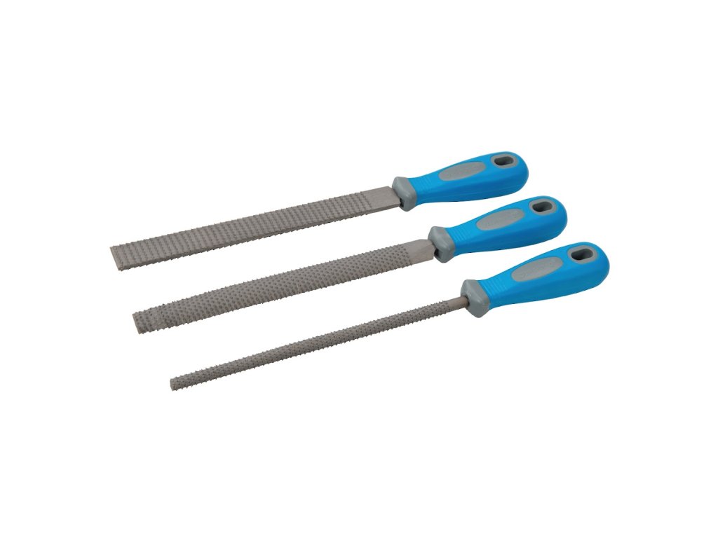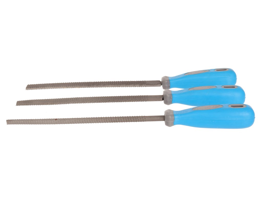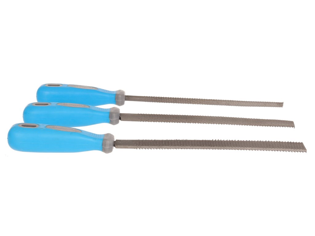 Ravna, polukružna i okrugla rašpa s kaljenim ugljičnim čelikom i polipropilenskom ručkom.
