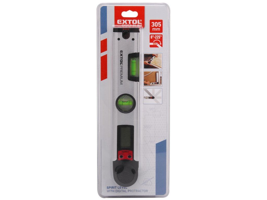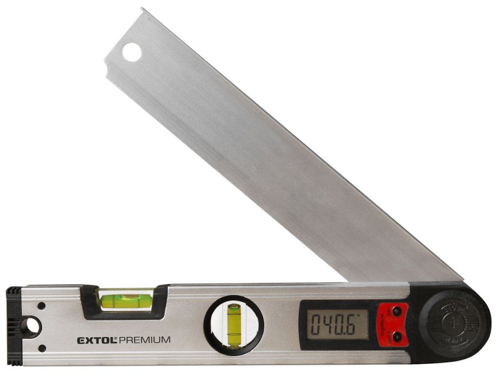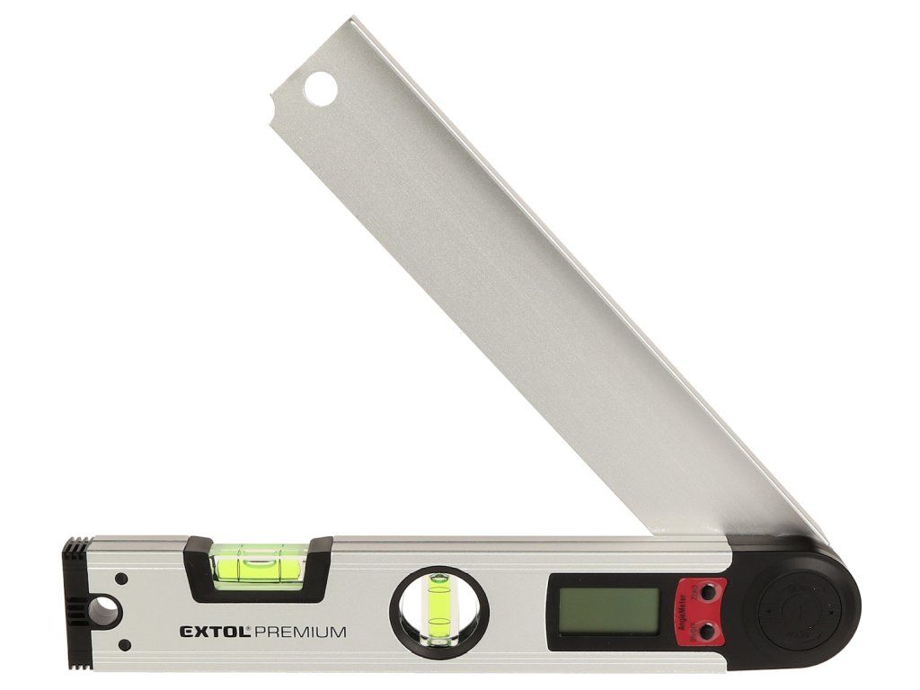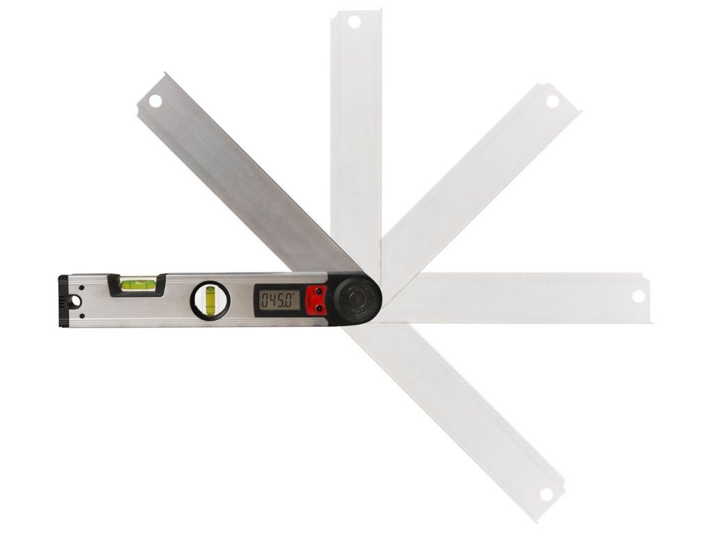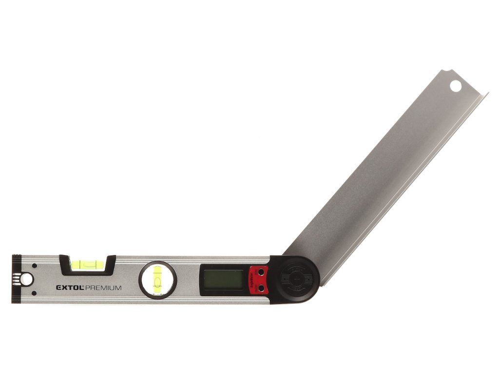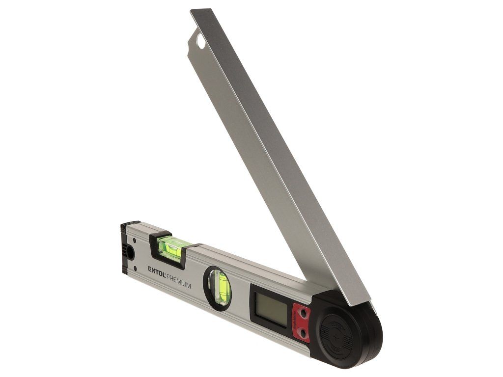 Aluminijska verzija debljine stijenke od 1,5 mm ima zglobnu ruku, rupu za vješanje, LCD zaslon i vertikalnu i horizontalnu razinu duha. Ukupna duljina 305 mm, točnost mjerenja kuta ± 0,3 mm; bočice 0,5 mm/m. Napajanje osigurava baterija od 1 kom 3V CR2032.