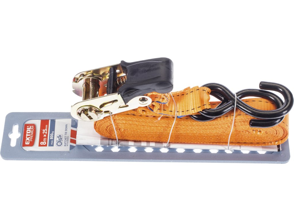 Opremljen je čegrtaljkom s gumiranom ručkom i kukama presvučenim plastikom. opterećenje 800 kg, čvrstoća remena pri omatanju 7,8 kN; u napetosti 3,9 kN; produljenje pri maksimalnom opterećenju 7%; Duljina dijela čegrtaljke je 0,5 m. Materijal remena: 100% poliester (PES).