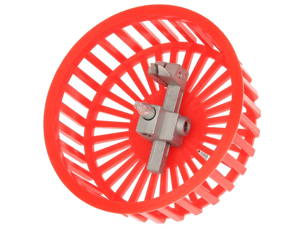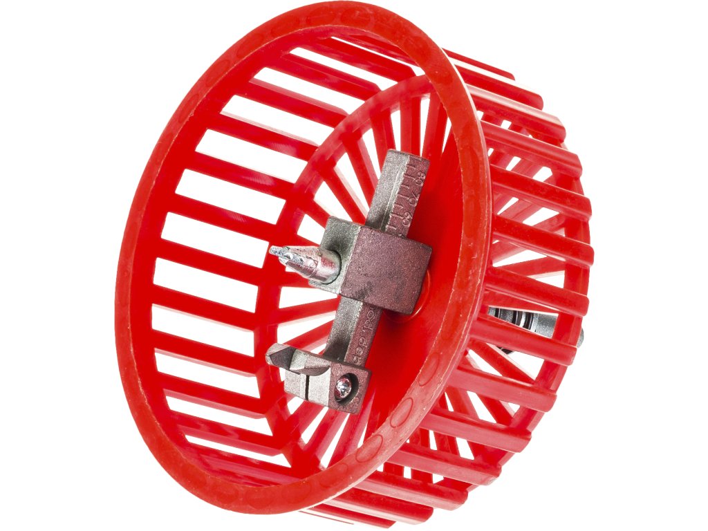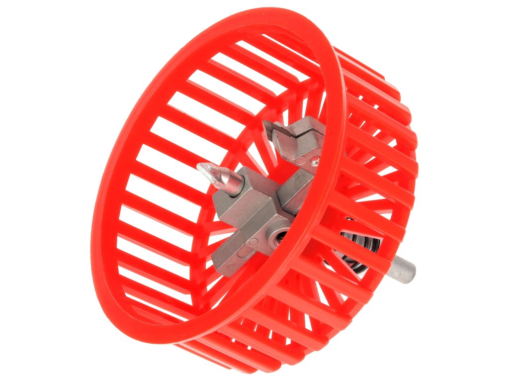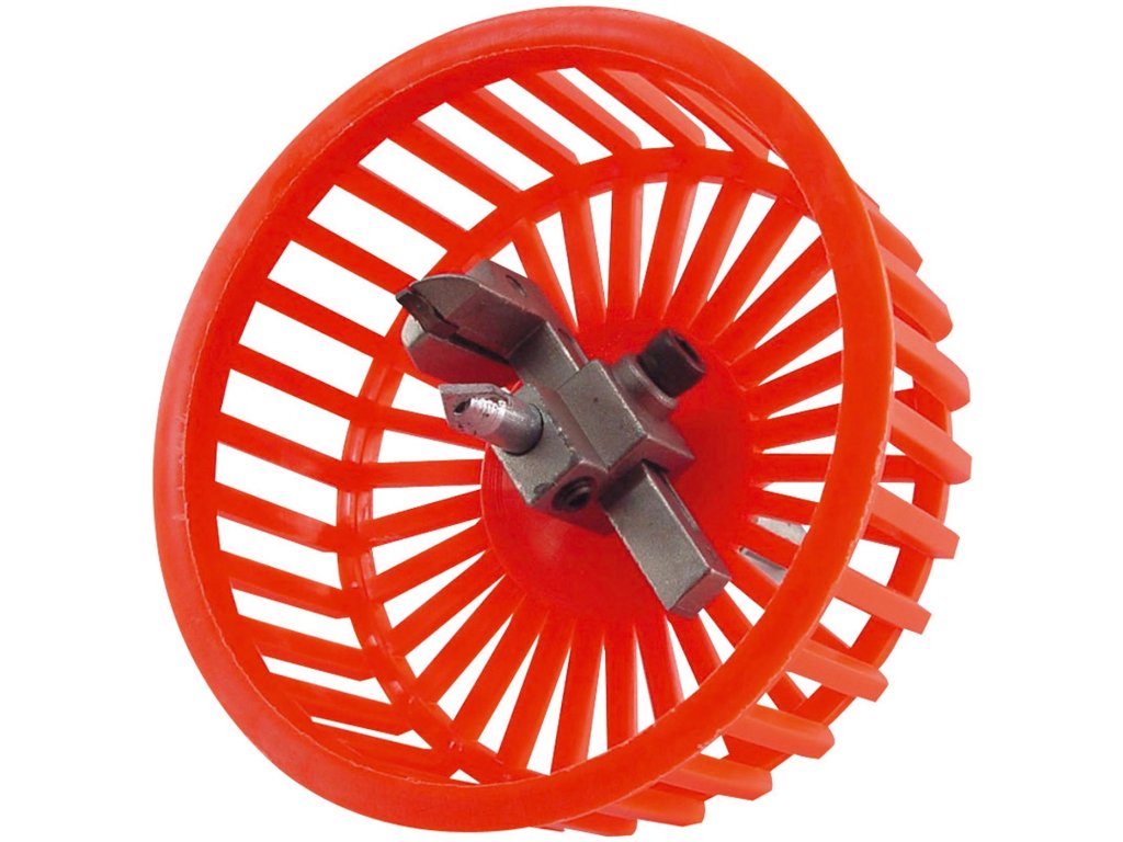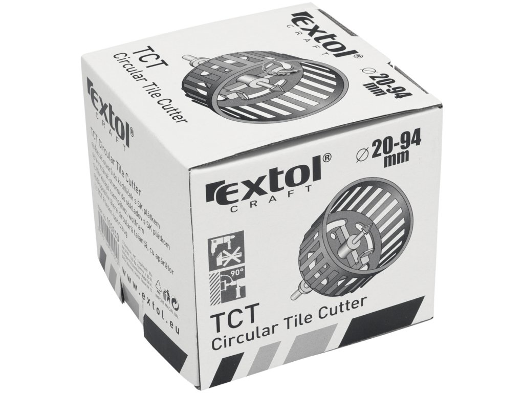 Alat s drškom za stezanje u bušilici i uvijanje potrebne rupe u keramičkoj pločici, npr. za utičnicu ili prekidač. Vodilica je osigurana ravnim vrhom, oštrica reže potrebnu rupu, a zaštitni poklopac sprječava širenje prašine u okoliš. Raspon promjera rupe 20 – 94 mm.