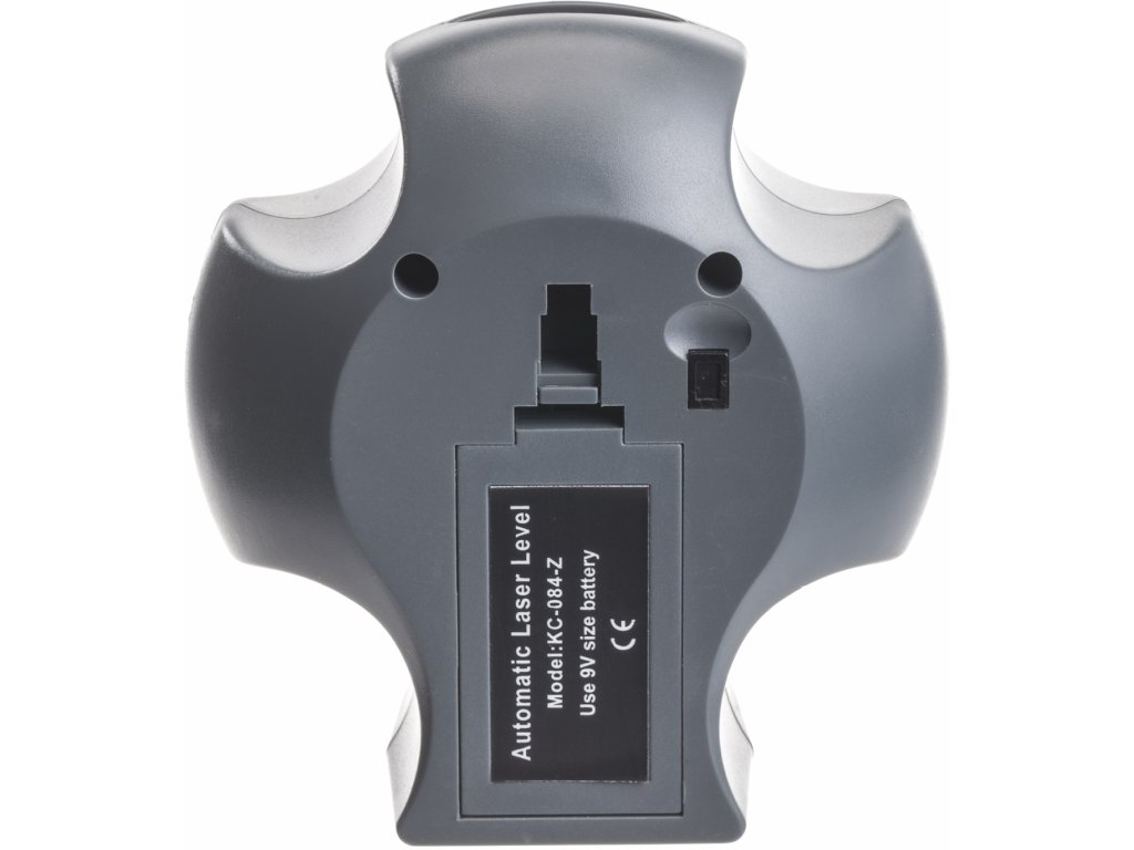 Samonivelirajući laser projicira horizontalne i vertikalne zrake koje omogućuju određivanje relativnog položaja objekata u odnosu na laserske linije. Pričvršćivanje gumenom samoljepljivom trakom ili iglama. Crvena laserska zraka širine < 5 mm, točnost ± 2 mm/2 m, učinkovit laserski raspon 2 m, raspon samoniveliranja ± 8 °, klasa lasera II, snaga baterije od 9 V.
