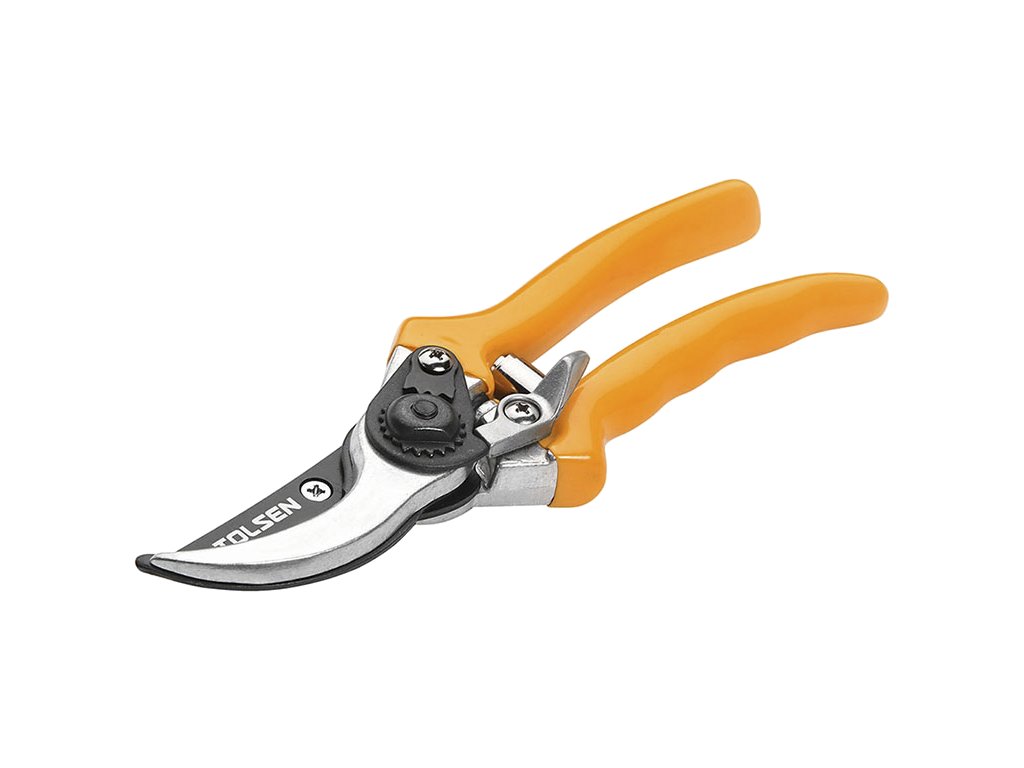 Visokokvalitetni škare za obrezivanje biljaka, grmlja i drveća. Lako se reže zahvaljujući posebnoj opremi. Duljina noža 55 mm. Plastične ručke. Oštrice obložene teflonom.