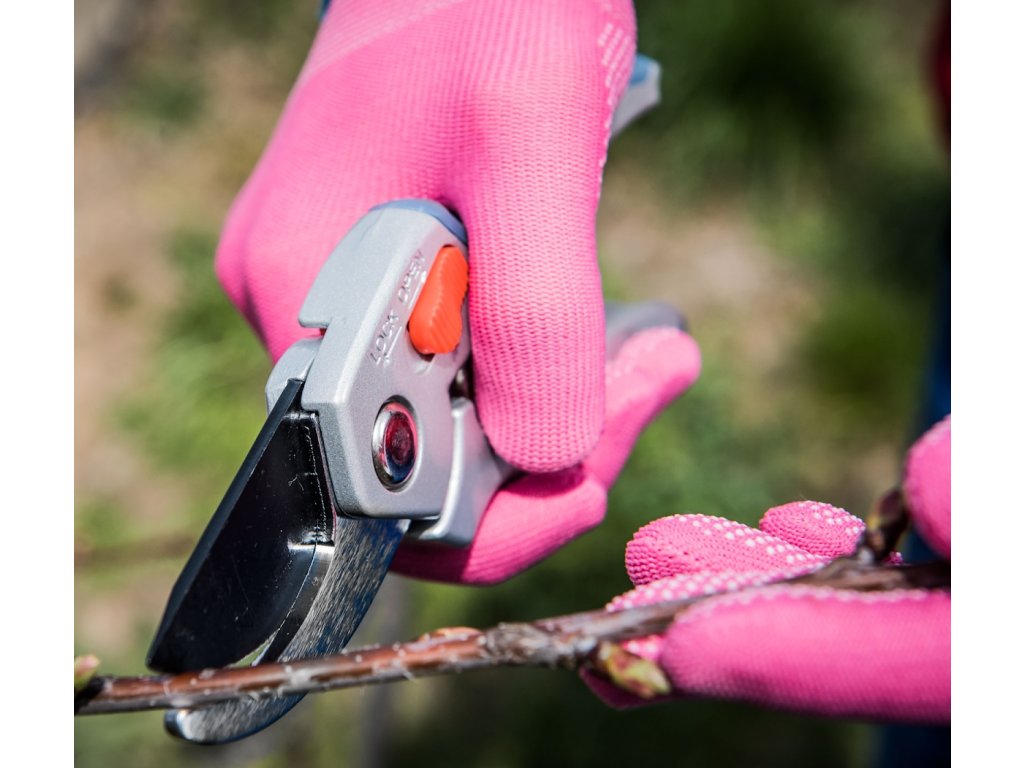Škare su opremljene zupčanikom za koračno rezanje s manje sile tijekom rada, što omogućuje rezanje grana promjera do 24 mm. Osim toga, opremljeni su posipačem ulja u ručki za obradu oštrice nakon rada (ulje smanjuje trenje i štiti od korozije). Poluga za zaključavanje je stvar ovog modela. Oštrice su izrađene od visokokvalitetnog čelika SK5. Ukupna duljina škara je 205 mm.
