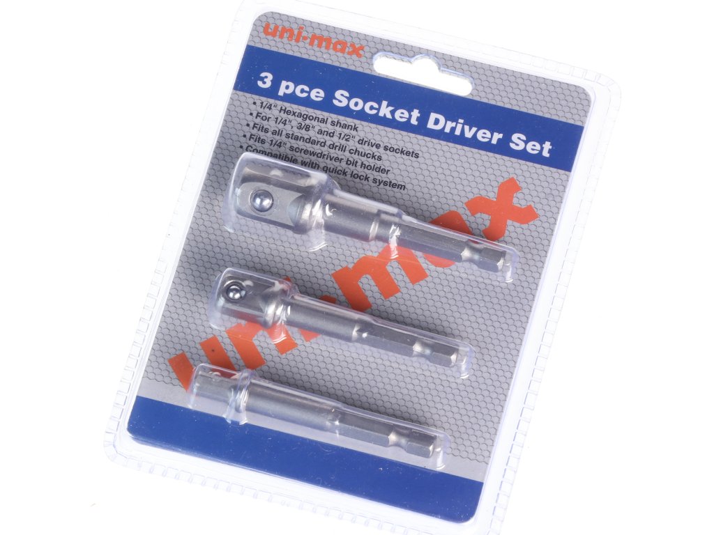 Dizajniran za upotrebu ključeva s utičnicama od 1/4", 3/8" i 1/2". 1/4" šesterokutna drška, prikladna npr. za akumulatorske odvijače.