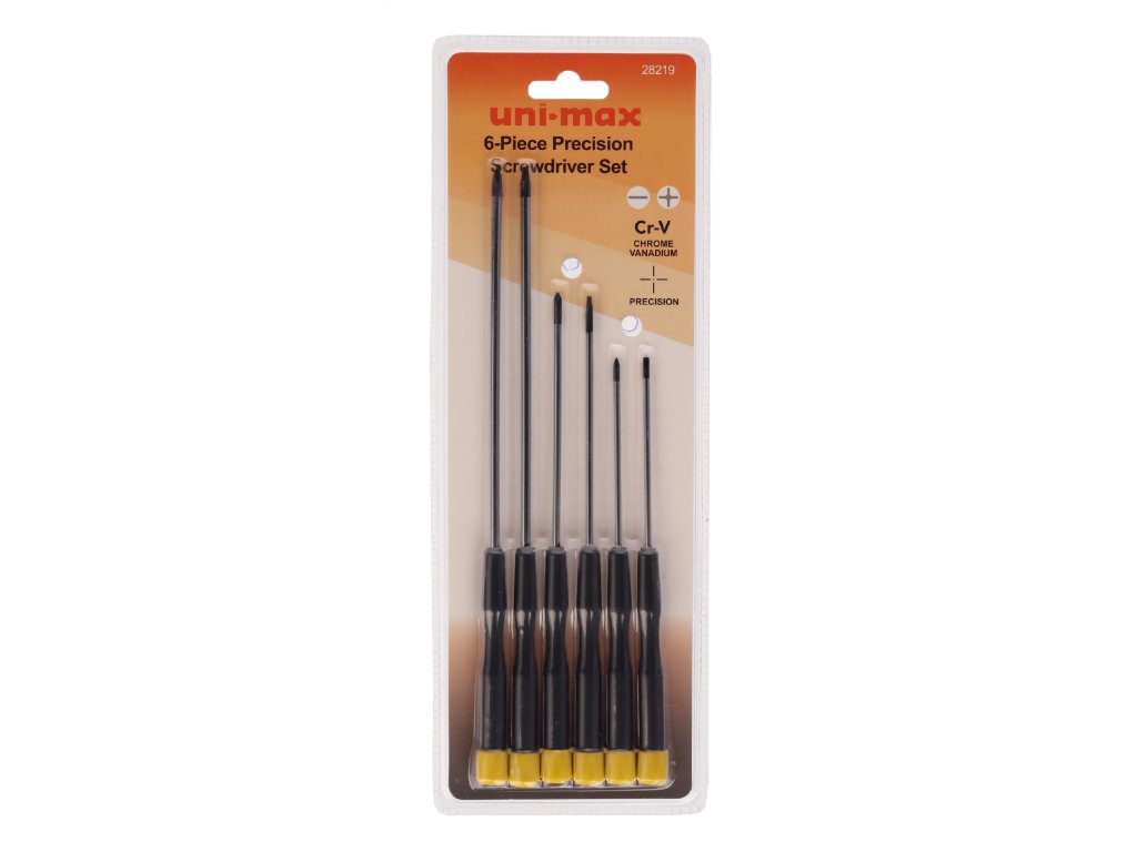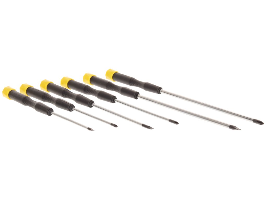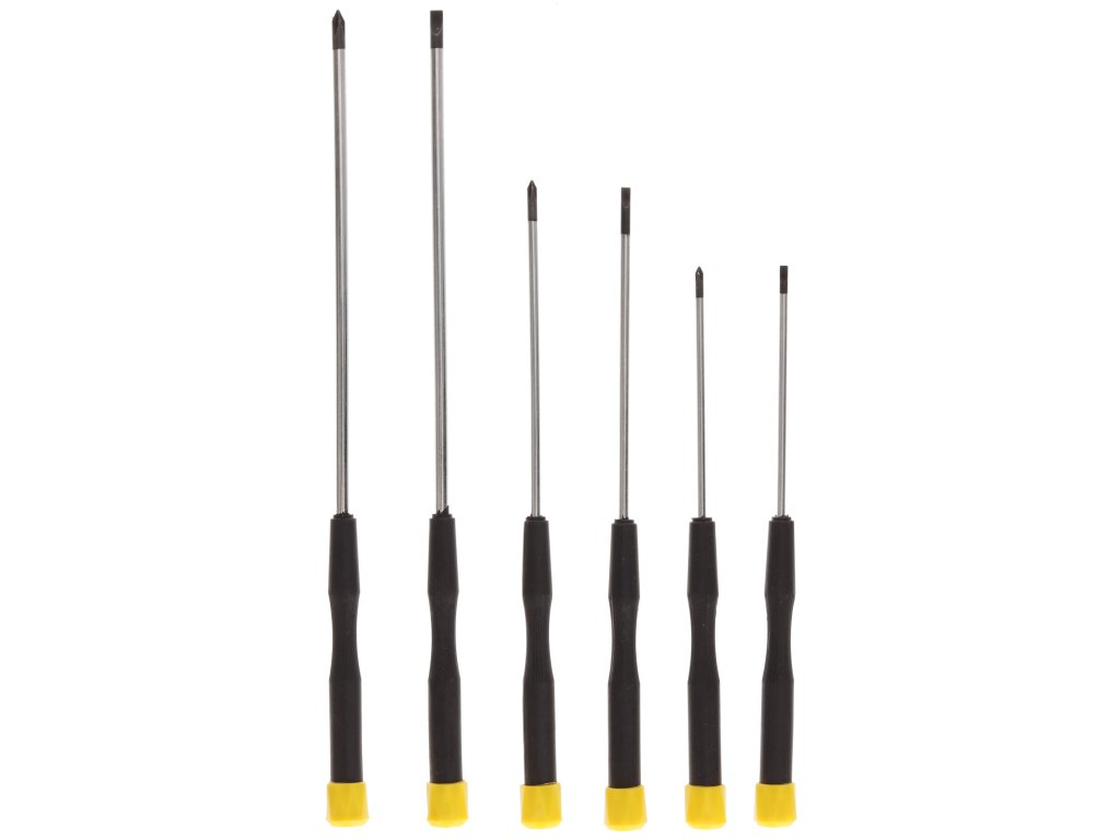 Sadrži visokokvalitetne, produžene odvijače: ravne 2,4 × 75; 3,0 × 100; 4,0 × 150 mm i Phillips odvijače PH00 × 75, PH0 × 100, PH0 × 150 mm. Materijal: CrV čelik, PP plastična ručka, magnetska glava, isporučena u blisteru.