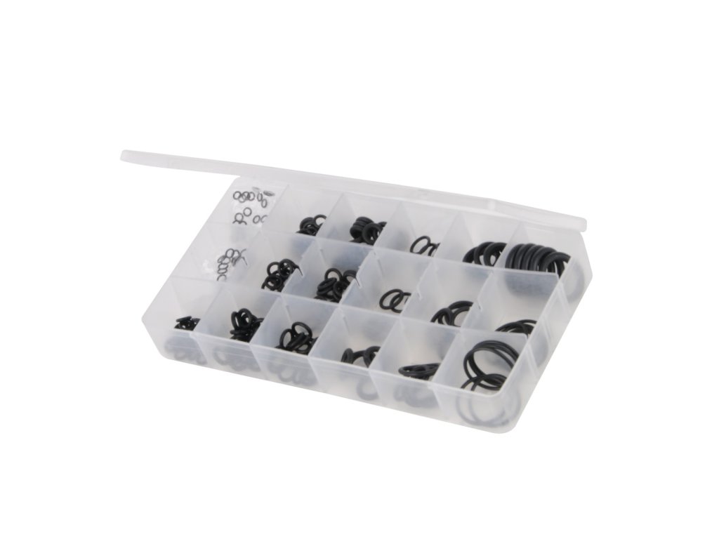 Skup gumenih prstenova za aksijalno brtvljenje u zraku, vodenim okruženjima. Unutarnje dimenzije 3 – 22 mm.