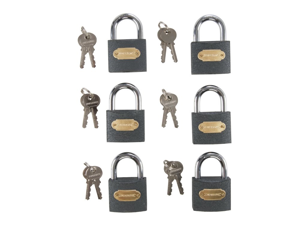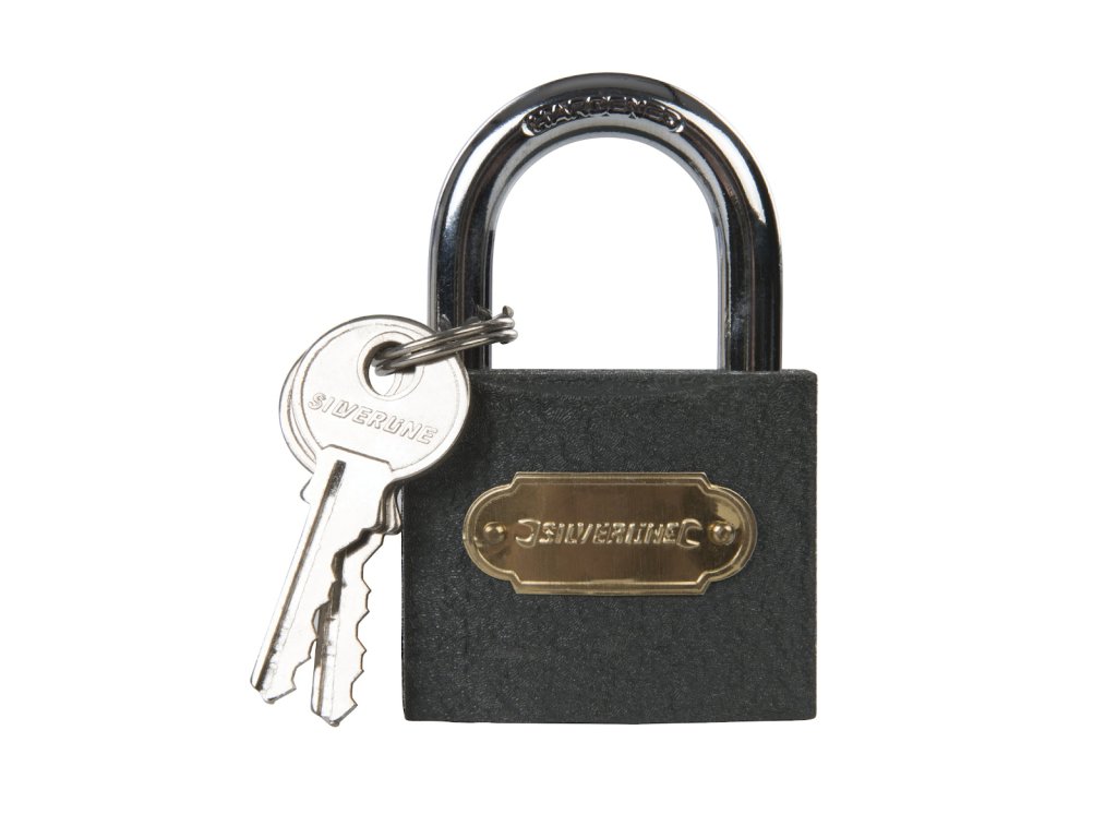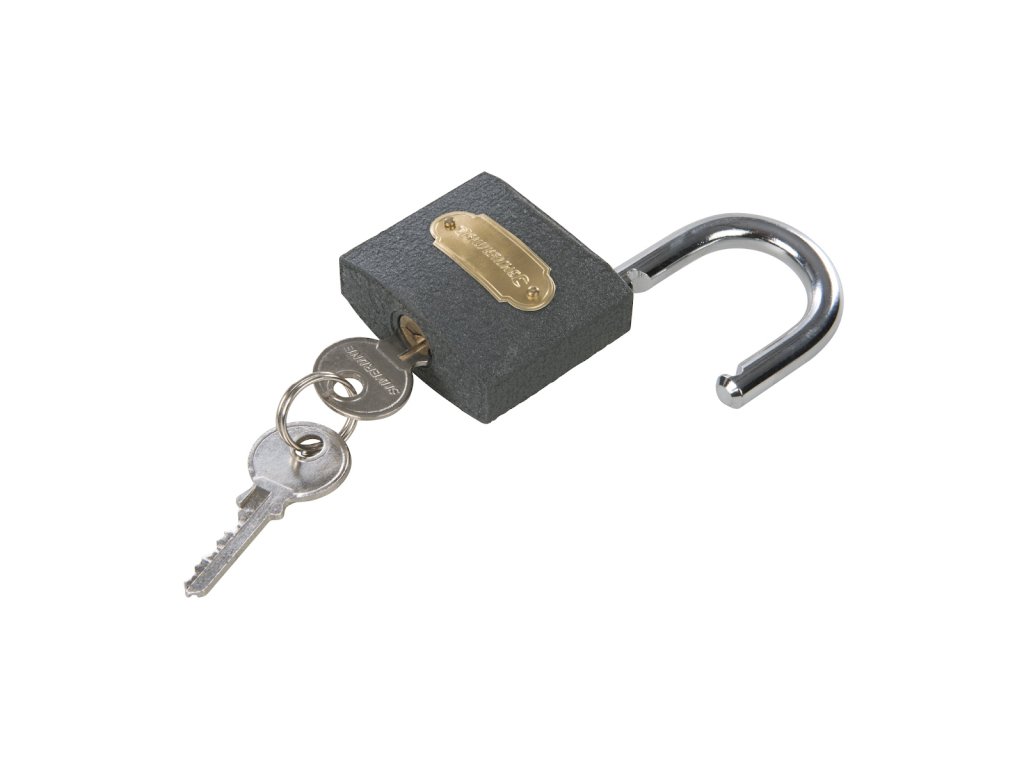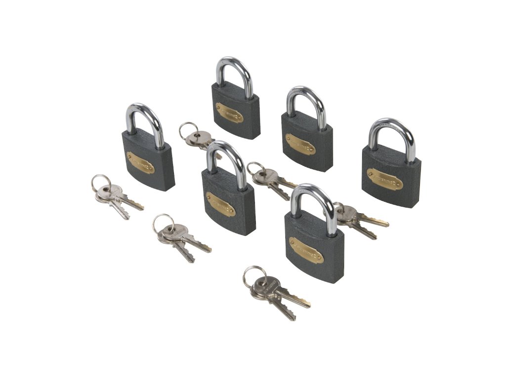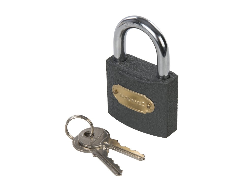 Lokot postavljen s univerzalnim ključem. 2 tipke za svaku bravu. Veličina čeljusti 26×26 mm, promjer čeljusti 8,5 mm.