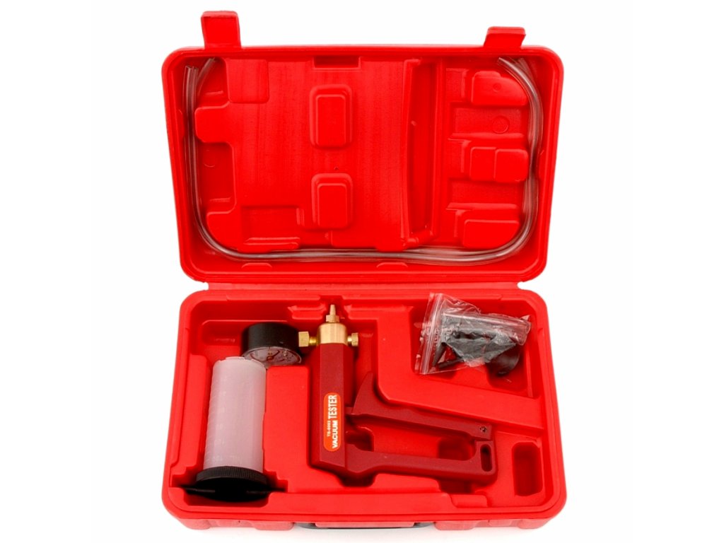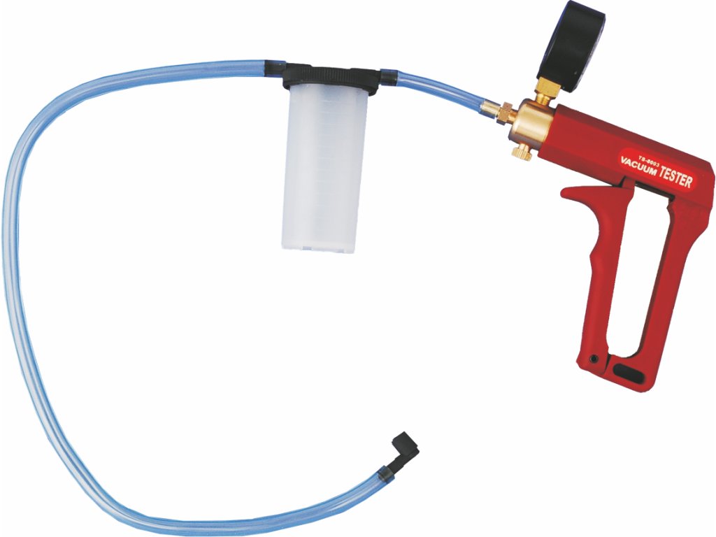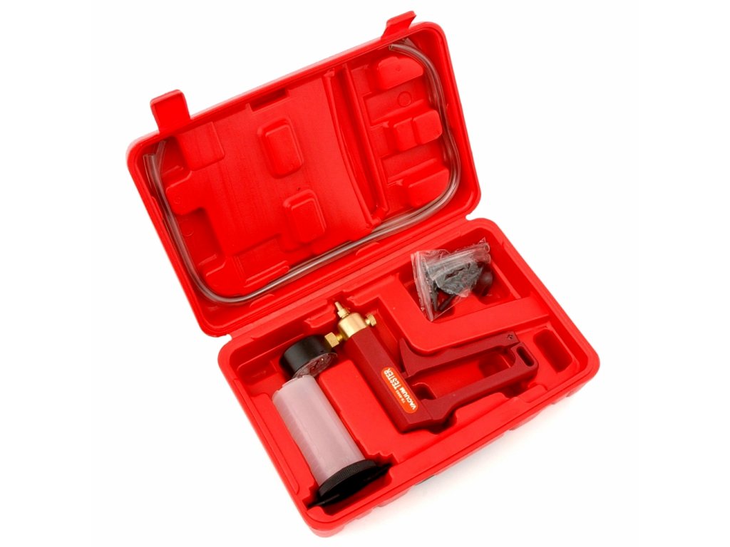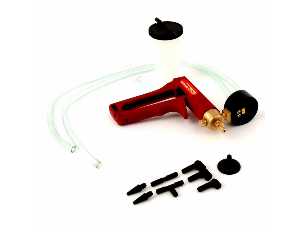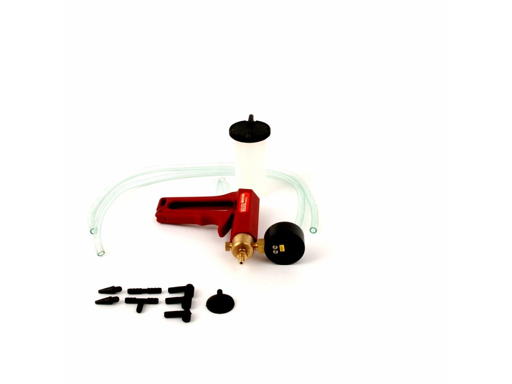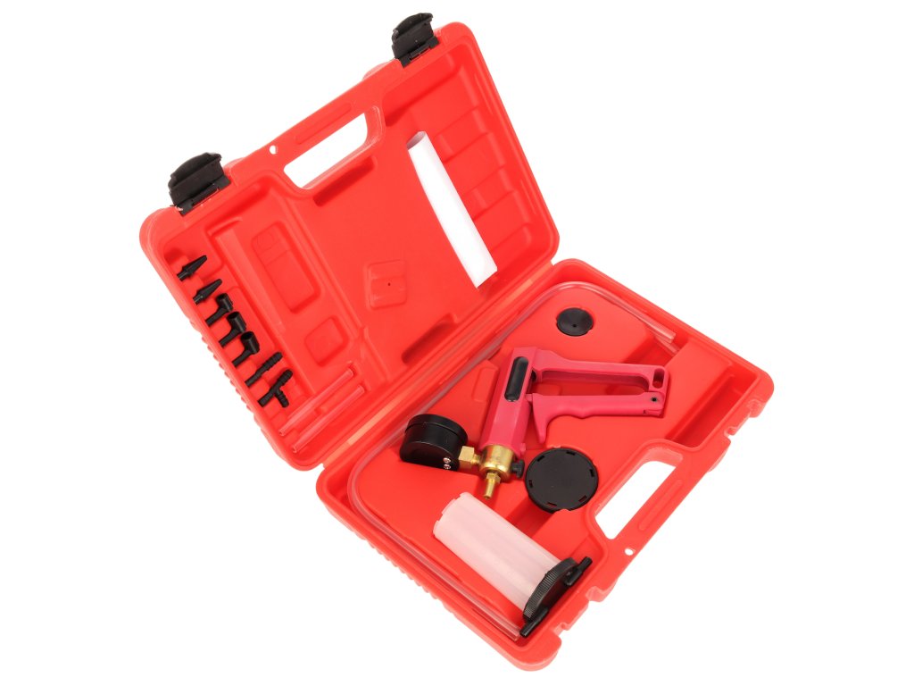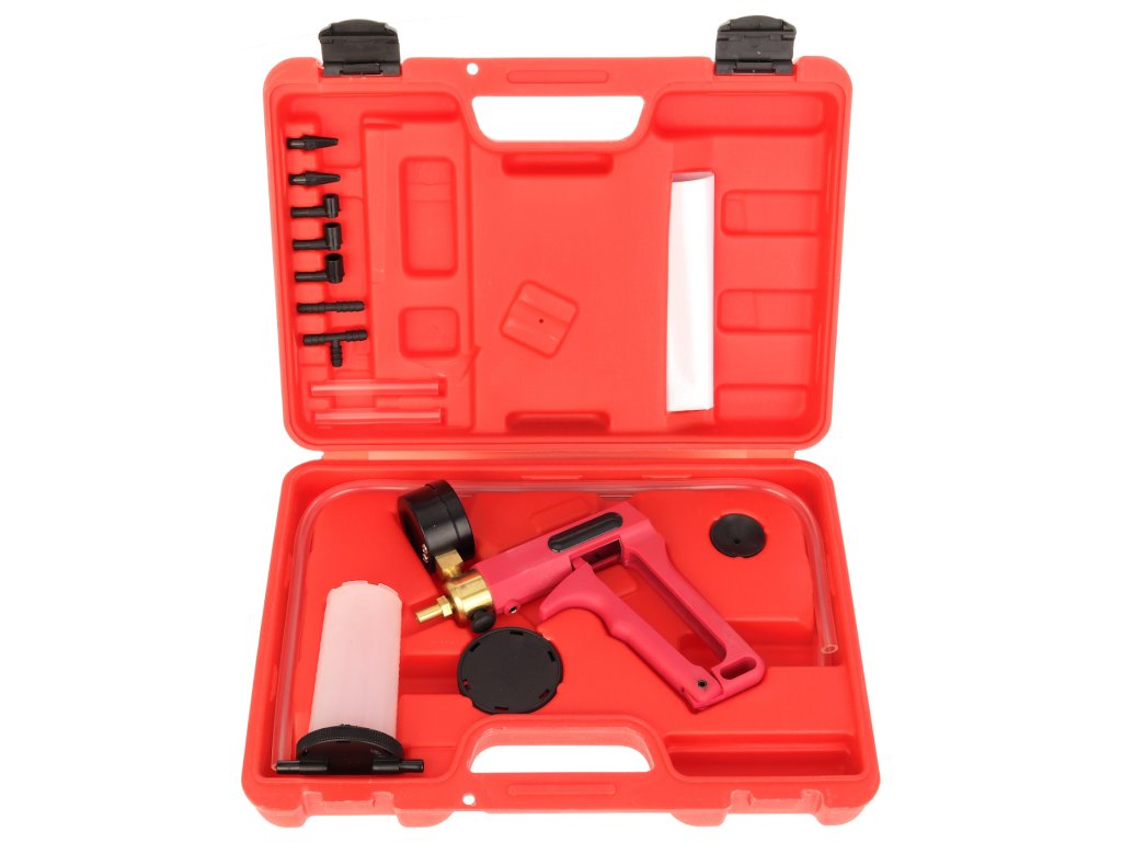 Ručni komplet vakuumske pumpe dizajniran za promjenu kočione tekućine i ispuštanje kočionog sustava. Kućište sadrži priključke za vijke za odzračivanje za uobičajene vrste vozila, cijevi i kalibrirani spremnik tekućine od 120 ml. Ostale namjene: Pregled elektronički upravljane opreme motora, pregled pribora za kontrolu paljenja, ispitivanja klimatizacijskog i grijaćeg sustava vozila, kontrola brzine, naginjanje svjetala, nepropusnost spremnika i vodova za gorivo, sustav zatvaranja vrata itd.