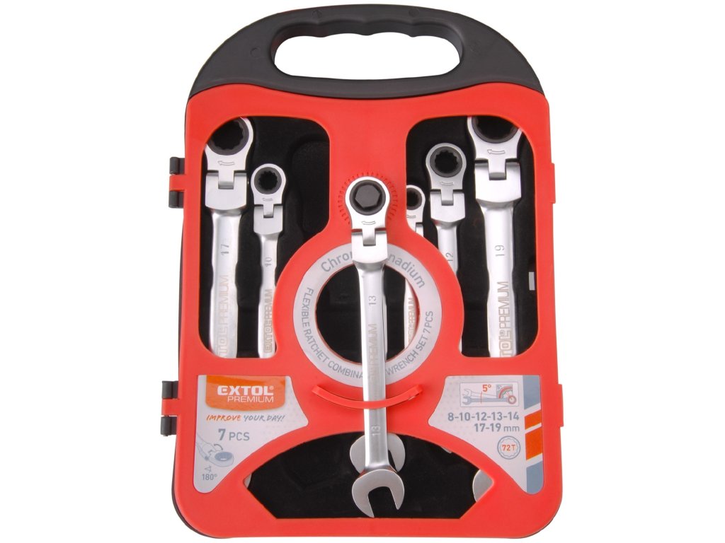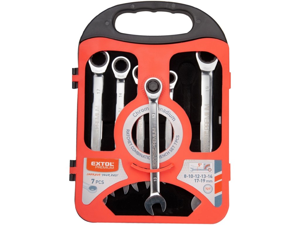 Skup ključeva sa 72 zuba s jedne strane i čegrtaljkom od 72 zuba, koji su opremljeni zglobom za širu uporabu. Veličine ključa 8, 10, 12, 13, 14, 17 i 19 mm. Materijal: CrV čelik, isporučen u plastičnom kućištu.