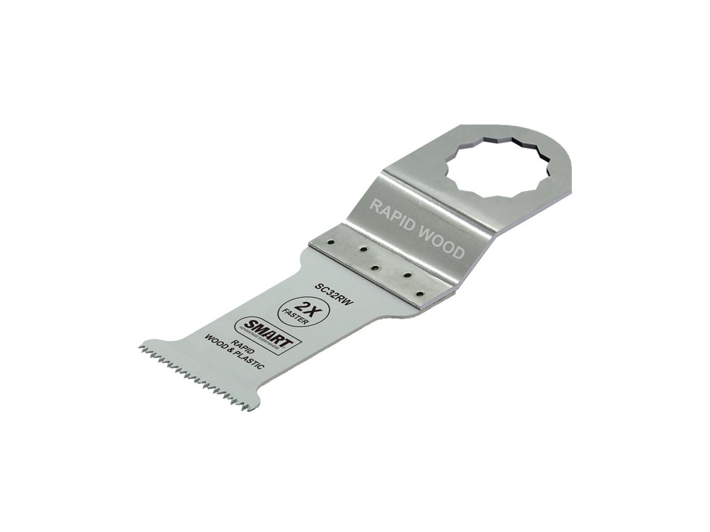 Oštrica ubodne pile proizvedena u Velikoj Britaniji. RAPID tip reže brže, čišće i dublje od bilo koje druge oscilirajuće drvene oštrice! Idealno za rezanje podova od mekog drva, tvrdog drva (npr. hrasta) i laminata. Rapid oštrice imaju zakrivljeni dizajn zuba za maksimalnu preciznost pri pokretanju reza. Marka SMART proizvodi neke od najboljih lopatica za višenamjenske oscilirajuće pile na svijetu i jedina je marka na tržištu koja nudi kombinaciju prilagođenih noževa s patentiranim STARLOCK nastavkom.