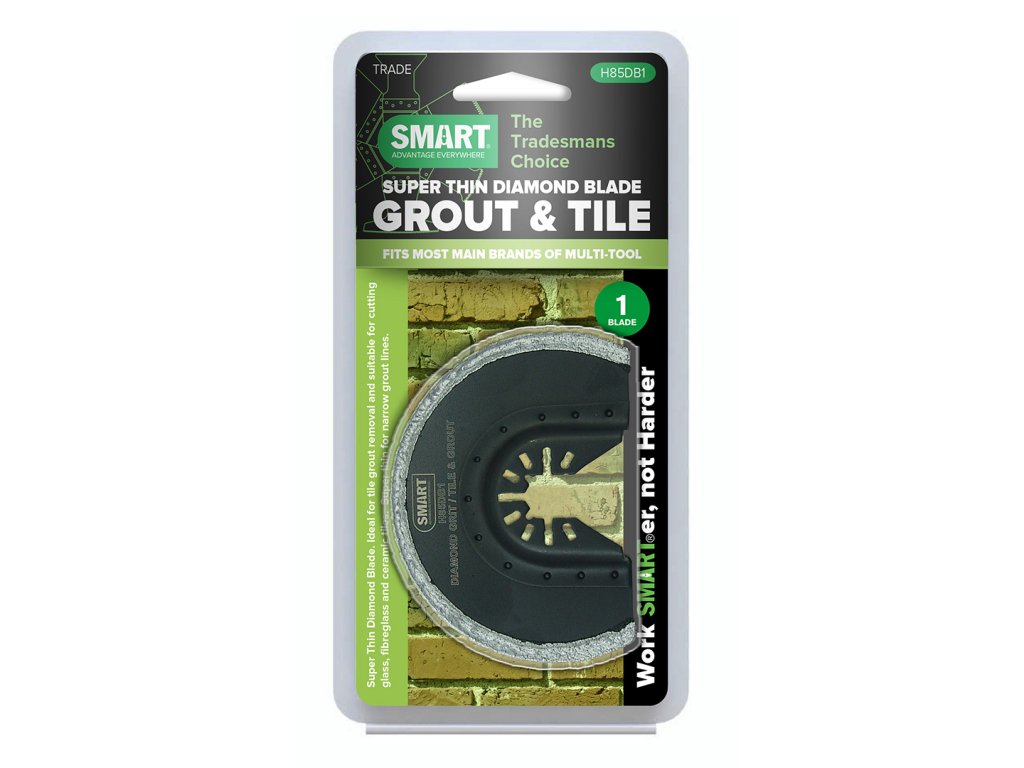 Izuzetno uska dijamantna oštrica proizvedena u Velikoj Britaniji. Pogodno za precizno uklanjanje fuga, brusnih pločica ili ziđa. Također pogodan za rezanje stakla, laminata ili keramičkih pločica. Promjer diska 85 mm. Debljina oštrice samo 1,8 mm. Marka SMART proizvodi neke od najboljih višenamjenskih oscilirajućih listova pile na svijetu i jedina je marka na tržištu koja nudi kombinaciju prilagođenih noževa s patentiranim NOSAČEM STARLOCK.