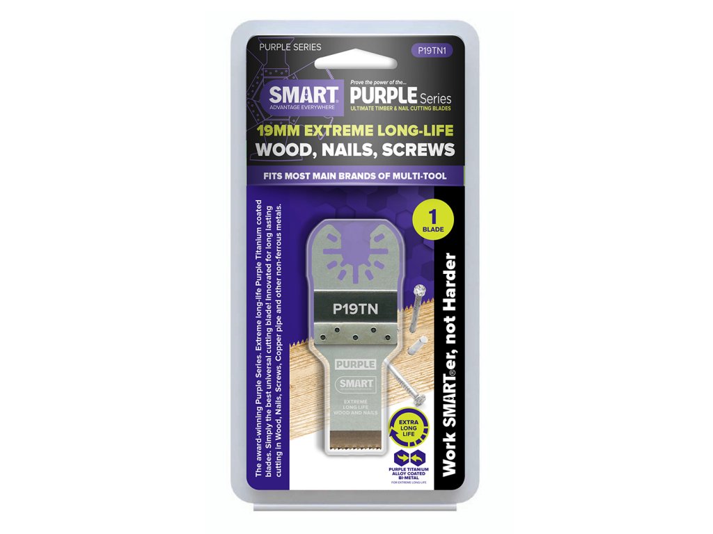 List pile od titana proizveden u Velikoj Britaniji. Dizajniran za drvo, plastiku, obojene metale i druge materijale. Širina noža 19 mm. Debljina lima samo 0,8 mm. Izuzetno dug vijek trajanja. Marka SMART proizvodi neke od najboljih lopatica za višenamjenske oscilirajuće pile na svijetu i jedina je marka na tržištu koja nudi kombinaciju prilagođenih noževa s patentiranim NOSAČEM STARLOCK.