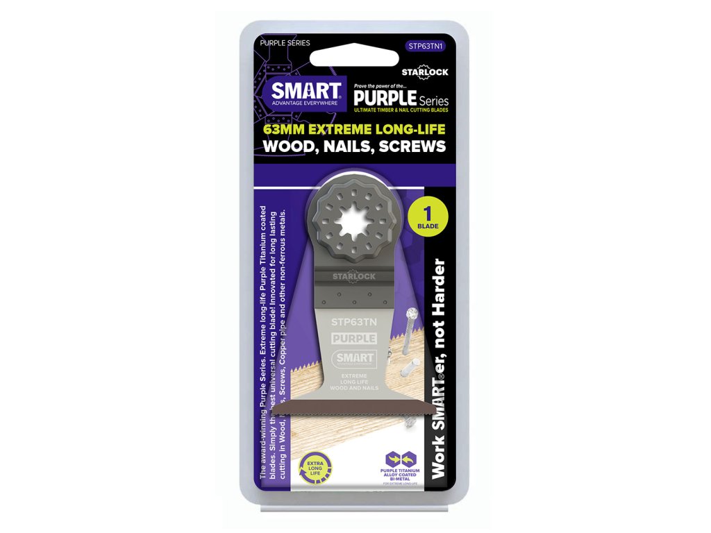 Vrhunska titanska oštrica proizvedena u Velikoj Britaniji. Patentirani STARLOCK nosač. Najviša kvaliteta i izuzetno dug vijek trajanja. Dizajniran za rezanje u drvu, plastici, obojenim metalima i drugim materijalima. Širina noža 63 mm. Marka SMART proizvodi neke od najboljih višenamjenskih lopatica za pile na svijetu i jedina je marka na tržištu koja nudi kombinaciju prilagođenih noževa s patentiranim STARLOCK nastavkom.