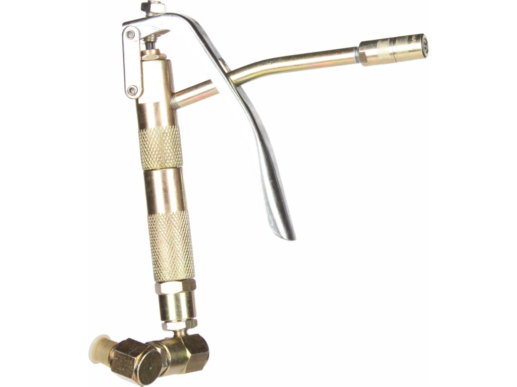 Visokotlačni pištolj za masnoću za doziranje masti s fiksnim pričvršćivanjem i vrhom od četiri čeljusti za stezanje na mazivu. Fleksibilni spoj omogućuje bolje rukovanje na teško dostupnim mjestima, G1/4" priključni navoj. Pogodno za pneumatske pumpe za podmazivanje.