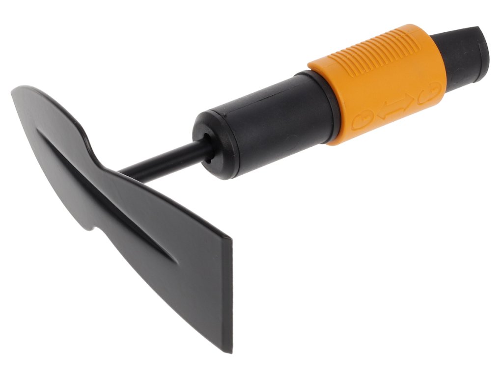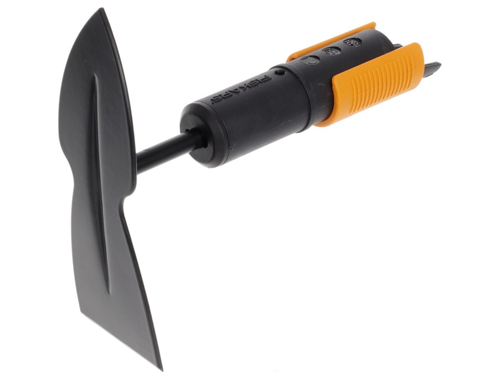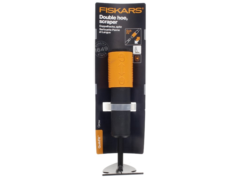 Dvostrana motika ima višenamjensku uporabu - za čišćenje pločica od mahovine i korova, te za uzgoj cvjetnjaka. Oštrica je izrađena od borovog čelika. Sustav QuikFit omogućuje kombiniranje različitih vrtnih alata s jednom ručkom. Preporučena ručka: S i M. Izvorni Fiskars broj: 137562.