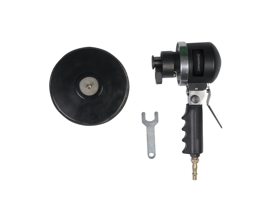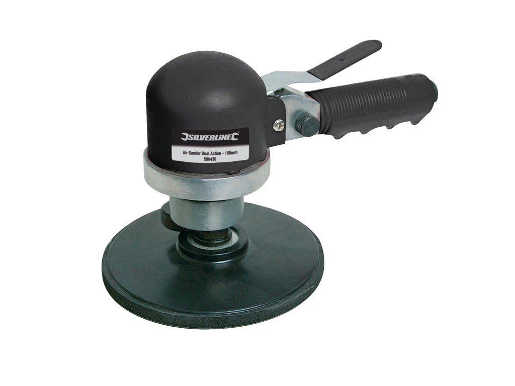 Aluminijska konstrukcija s integriranim regulatorom brzine. Orbitalna rotacija stvara kvalitetnu površinu prije bojenja. Paket uključuje i britanske i europske brze priključke. Samoljepljiva brusna podloga promjera 150 mm. Brzina bez opterećenja 10.000 min-1. Potrošnja zraka 113 l/min (4 cfm).