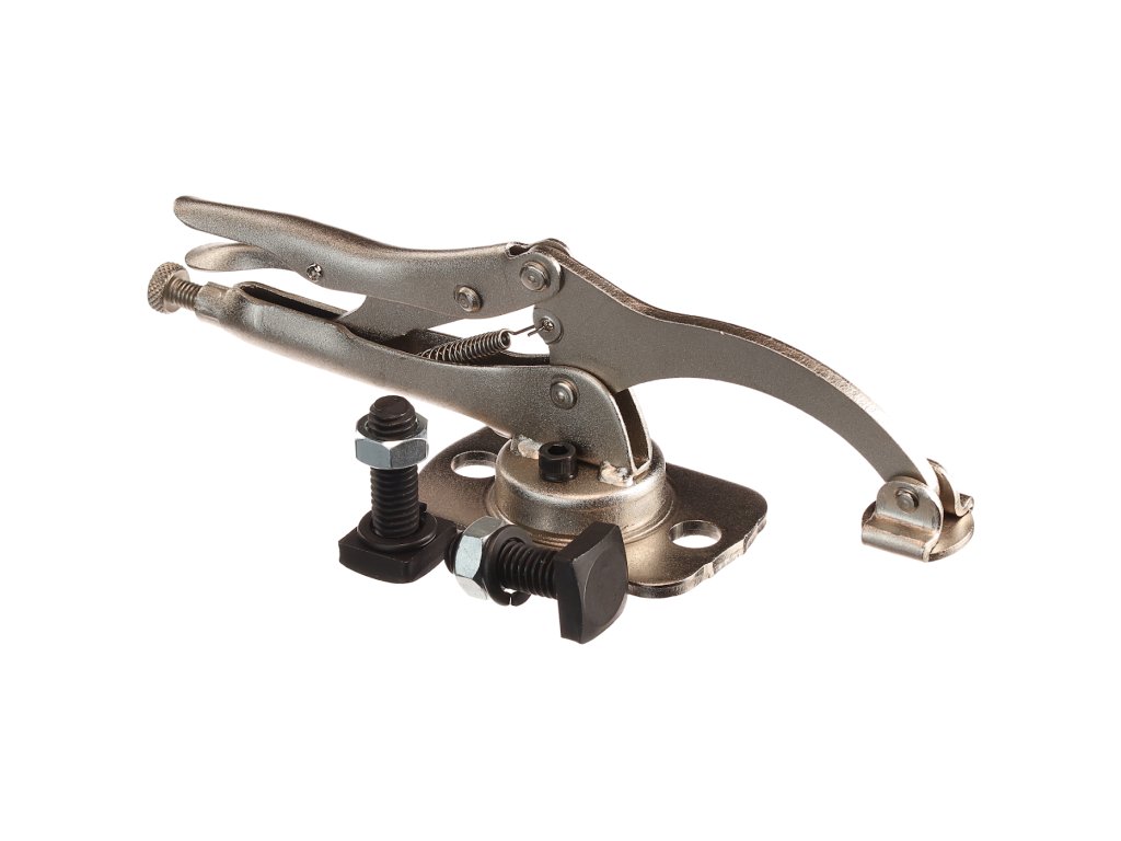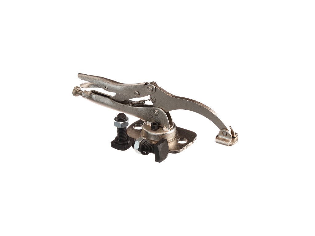Čvrsto obrađeni materijal drži na stolu. Pričvršćuje se na radni stol s 2 vijka T-glave. 360° rotirajuće. Zahvaljujući svom dizajnu, omogućuje brzo i sigurno prianjanje jednom rukom. Duljina 225 mm.