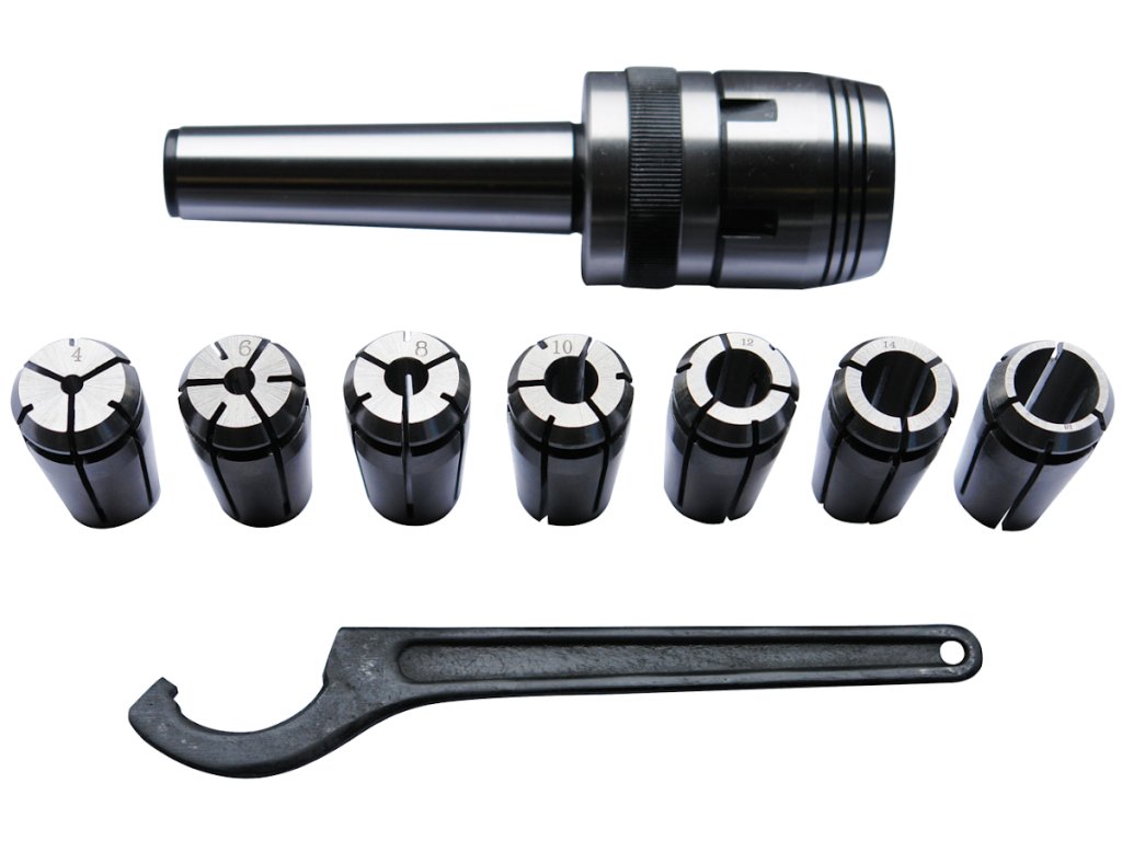 Sastav seta: stezna glava (→ s stožastim drškom MK 3), stezne čahure ø 4/6/8/10/12/14/16 mm. Stezaljka je prikladna, na primjer, za GBF 550 Mini glodalicu (narudžba br. 48140).