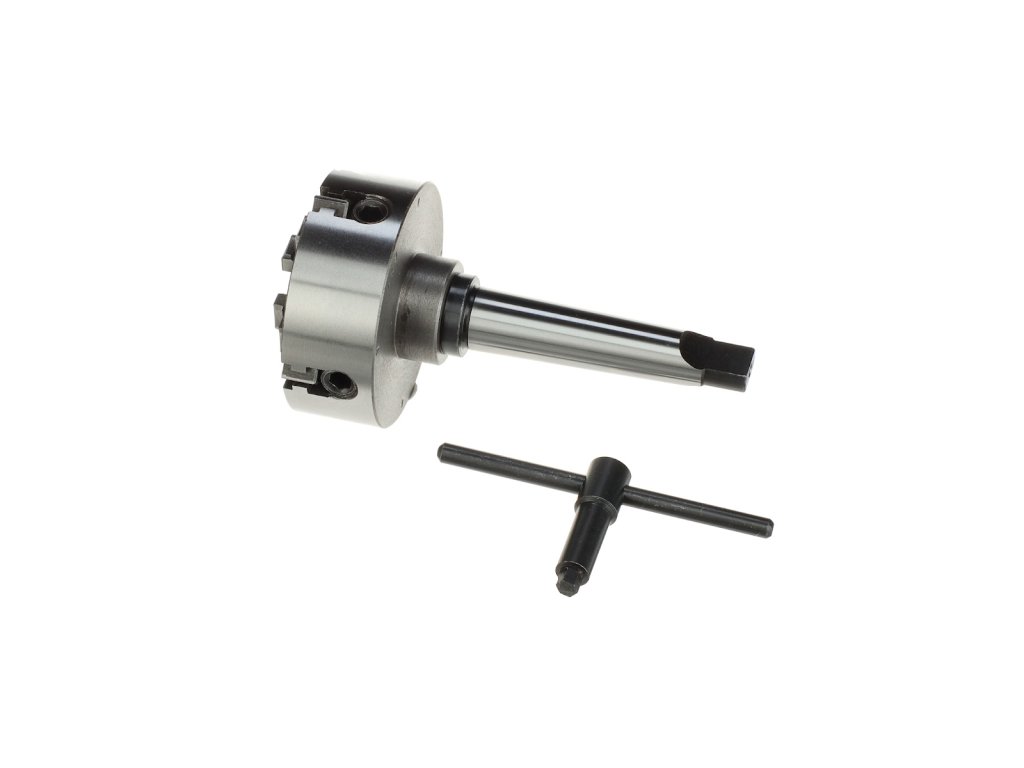 Čeljusti se uvlače nekoncentrično, svaka zasebno, može se ukloniti i rotirati, maksimalni promjer stezanja 80 mm izvana i 45 mm iznutra, stožasti stezni tip MK2.
