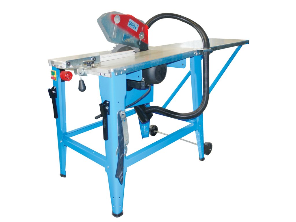 Konstrukcija: stabilan čelični okvir, produženi radni stol (→ stražnji priključak), štitnik noža za rezanje s integriranim uređajem za odvod strugotine, poprečni/uzdužni/kutni graničnik, priključak za ekstrakciju.
