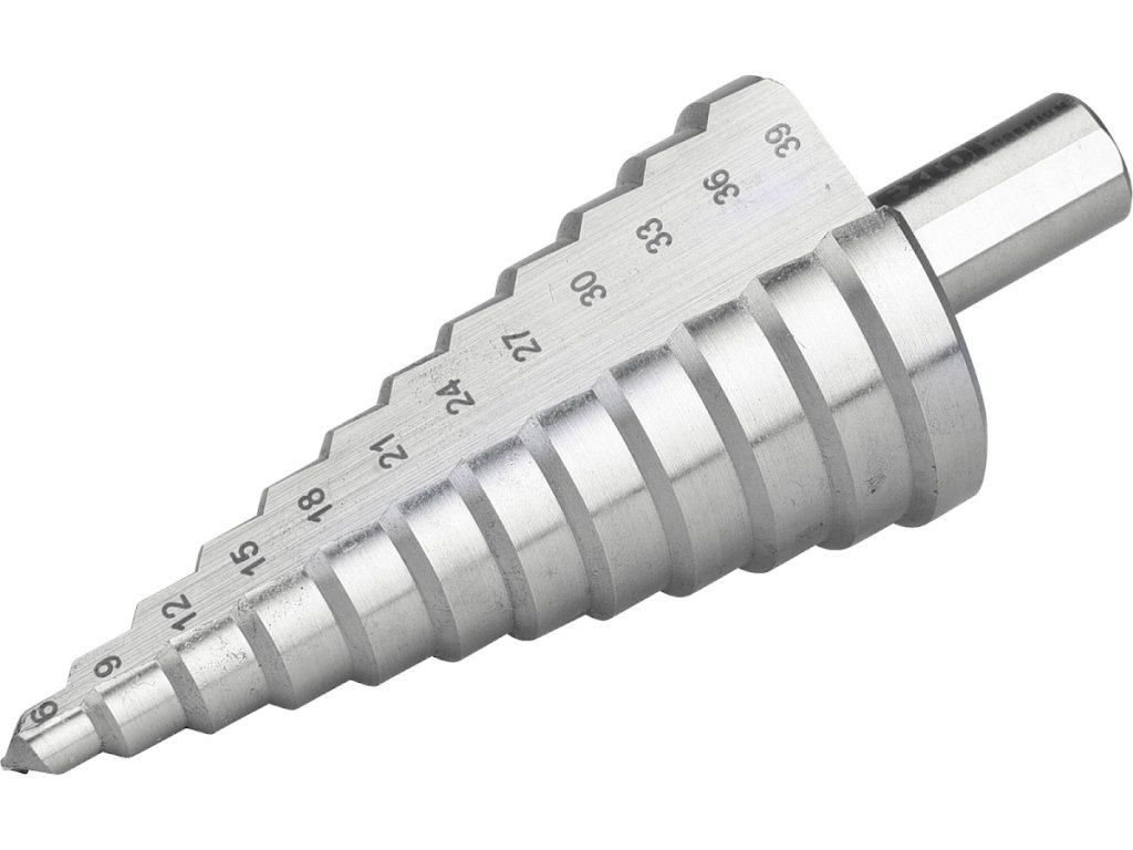 Stepaste bušilice koriste se za bušenje okruglih rupa u legiranim i nelegiranim čeličnim pločama, cijevima i profilima debljine stijenke do 4 mm, za bušenje i uklanjanje u jednoj operaciji. Također se mogu koristiti za bušenje u mekšim materijalima kao što su drvo, plastika i pleksiglas. Konusni svrdlo dizajniran je za glatko bušenje i bušenje bez središta bez deformacija lista. Svrdla se mogu ponovno izoštriti.