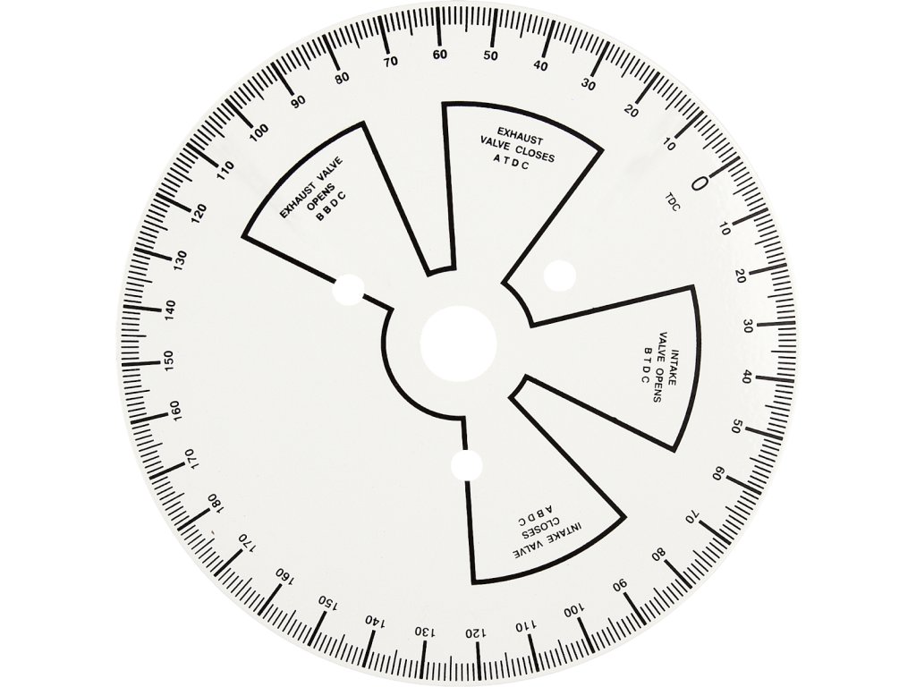 Vremenski kutomjer dizajniran za označavanje gornjeg mrtvog središta i provjeru postavki bregastog vratila. Koristite zajedno s indikatorom biranja za ispravno podešavanje otvaranja i zatvaranja ventila. 3 rupe omogućuju pričvršćivanje na radilicu, promjer diska 320 mm.