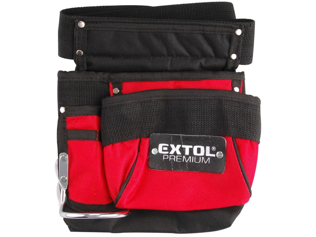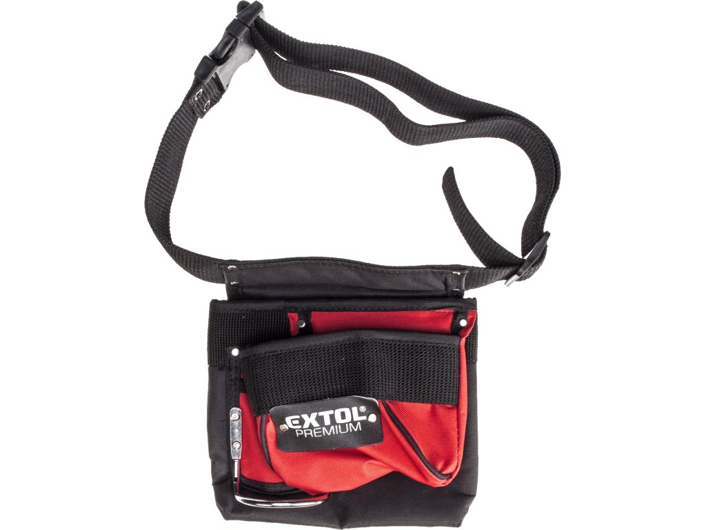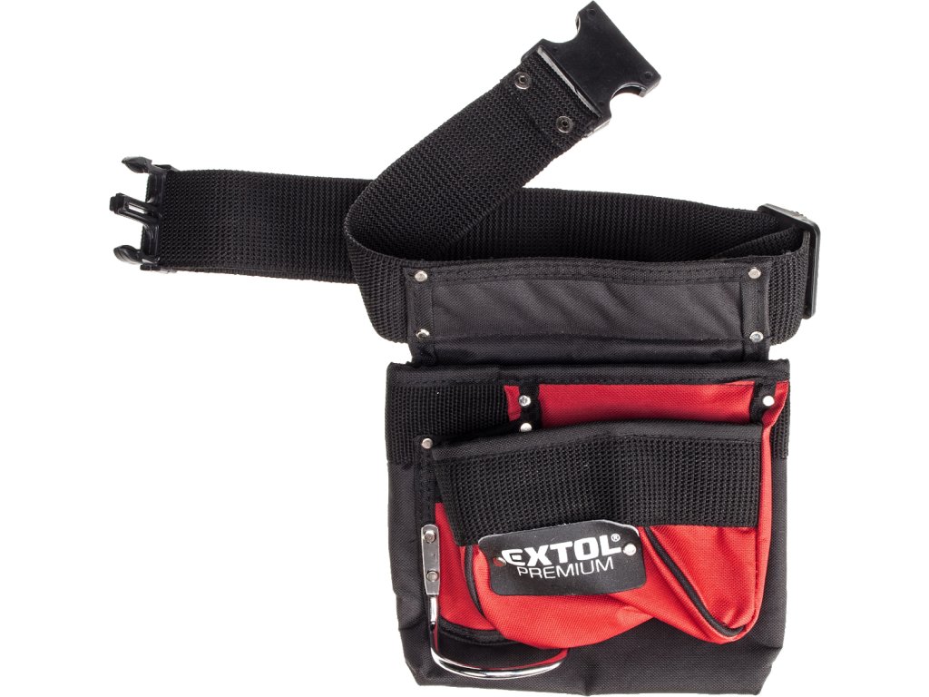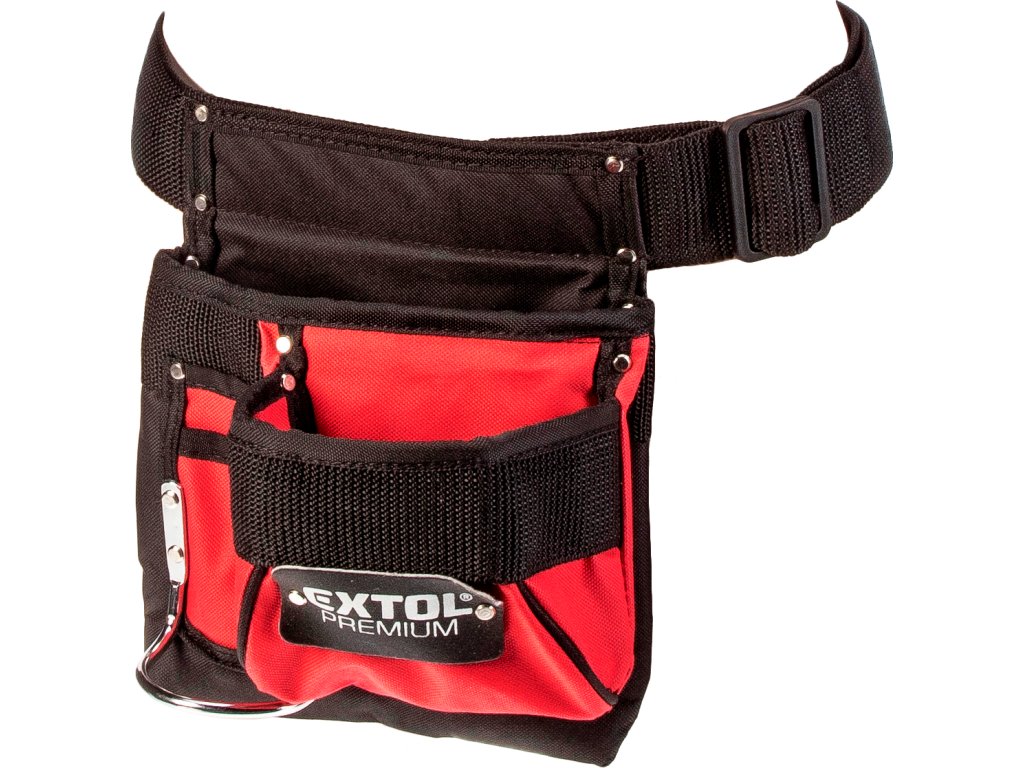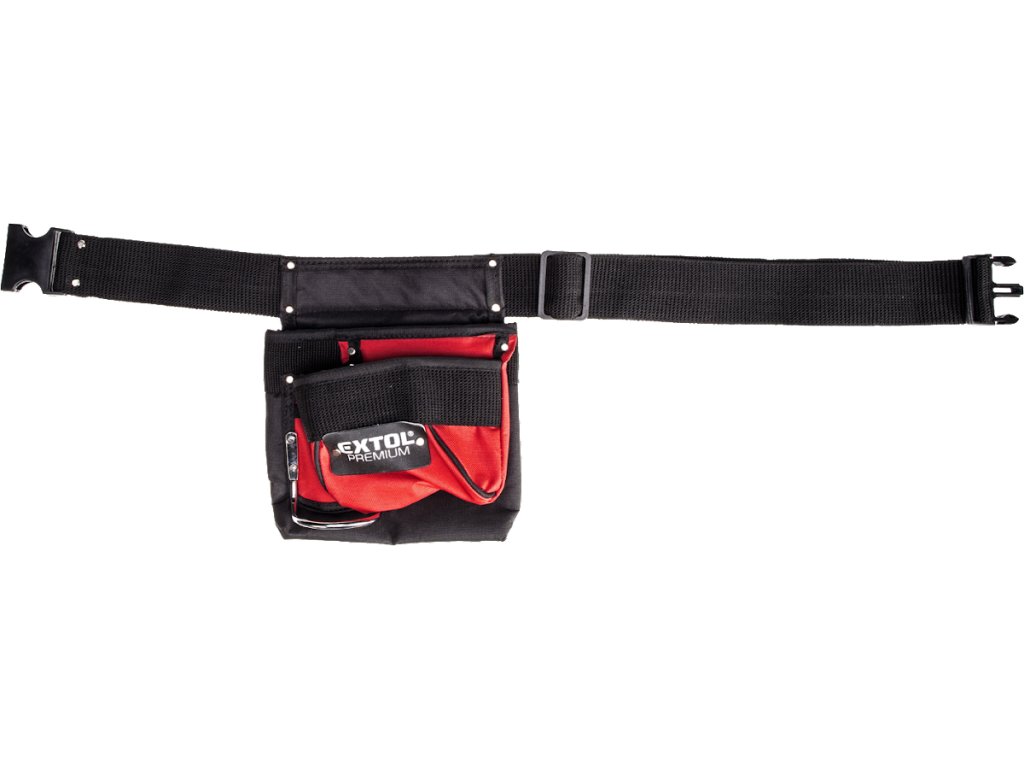 Uključuje 1 veliki, 1 srednji i 1 mali džep, držač čekića i držače za olovku ili odvijač. Za pričvršćivanje se koristi remen s plastičnom kopčom s brzim otpuštanjem. Materijal: najlon povezan s iznimno jakim zakovicama.