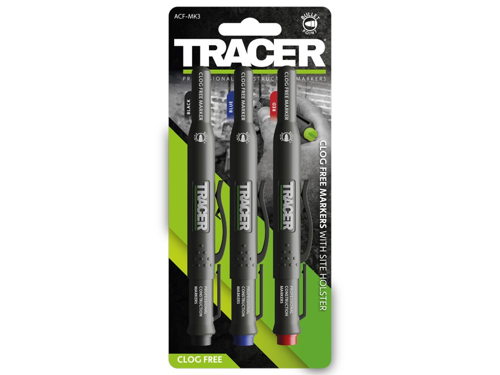 Skup dugotrajnih, univerzalnih markera koji mogu pisati na većini površina, bilo da se radi o betonu, cigli, drvu, staklu ili drugim sjajnim i prašnjavim površinama. Poklopac s kukom također služi kao kućište. Poseban dizajn osigurava pouzdano označavanje bez isušivanja, začepljenja i preskakanja. Paket uključuje 3 markera u plavoj, crnoj i crvenoj boji.