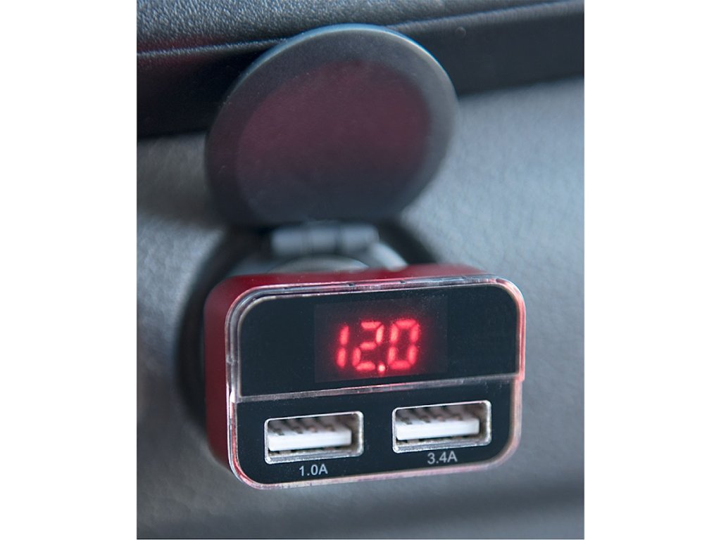 - mjeri napon baterije/alternatora automobila i izlaznu struju / napon, USB1 - 1A, USB2 - 3.4A, USB1+USB2 - 3.4A