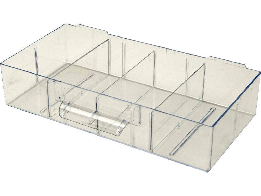 Zamjenska prozirna ladica izrađena od PS-a (polistirena) za zidne organizatore serije 67xx. Ladica se može podijeliti pomoću malih razdjelnika, čl. 6235 ili 6242. Dimenzije: 57 × 276 × 136 mm.