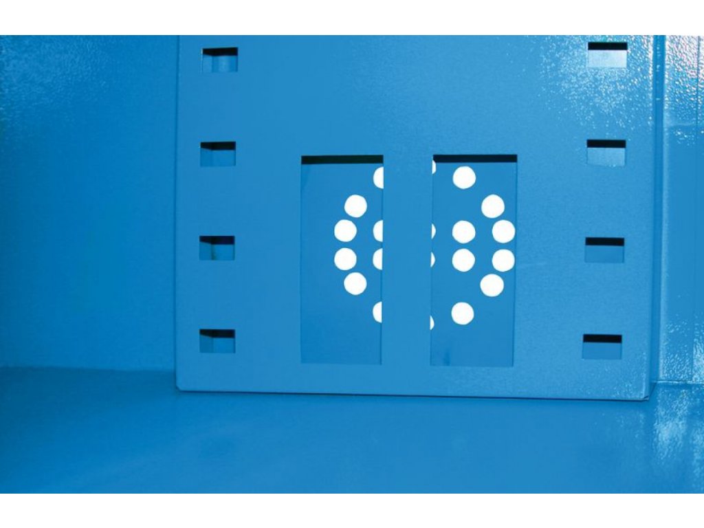 Oprema: ormar s dvostrukim vratima (brava s cilindrom/međuosovinskim razmakom - dvostruko zaključavanje, 2 ključa); 6 ladica za izvlačenje izrađenih od pocinčanog lima (opcionalno podešavanje visine, nosivost: 50 kg); ventilacijski sustav kućišta (ventilacijska rešetka i dimnjak).