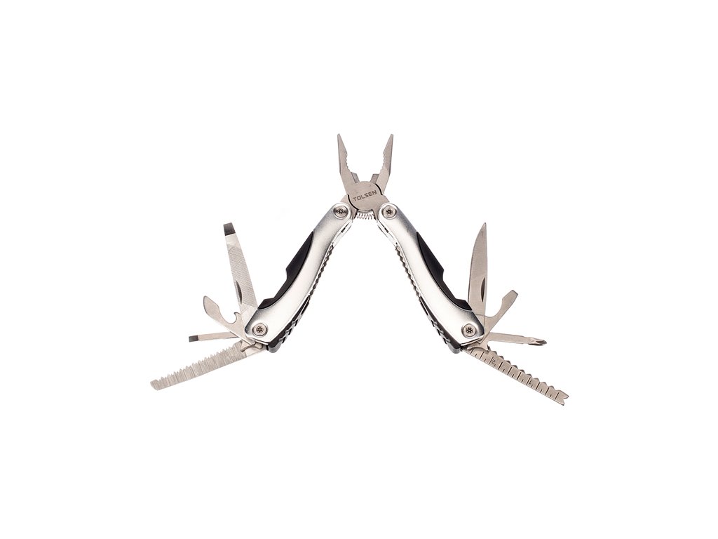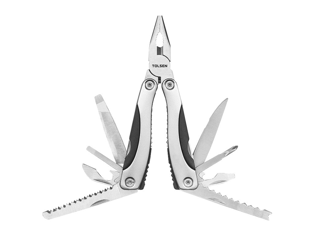 Izvrstan pomagač za putovanja, kampiranje, ribolov itd. Materijal: čelik 2Cr13. Dimenzije 102 × 46 × 23 mm. Alat uključuje: šiljasta kliješta, kliješta ravnog nosa, kliješta, nož, PH Phillips odvijač, otvarač za boce, odstranjivač kamenca, sredstvo za uklanjanje kuka, ravnalo, široki ravni odvijač, ravni odvijač, datoteku, otvarač za limenke i pilu. Paket uključuje praktično kućište s kopčom za vješanje na pojas.