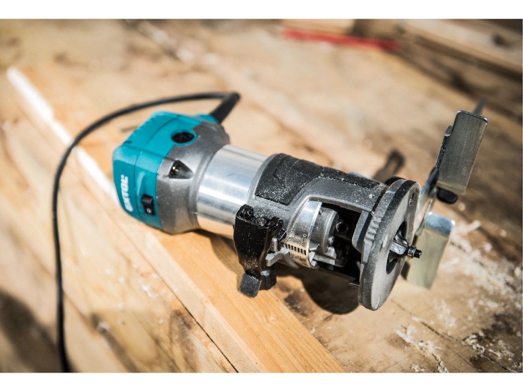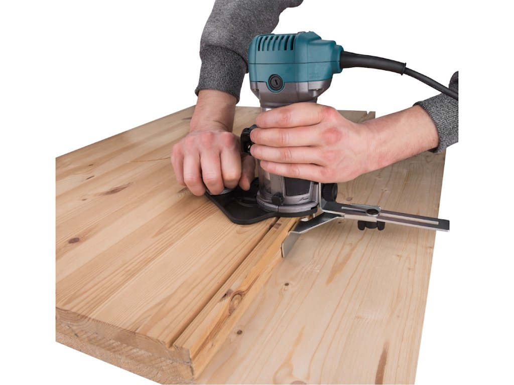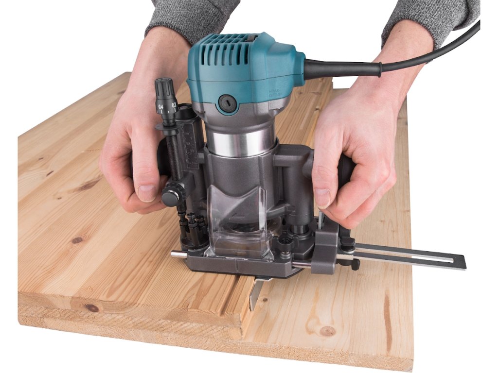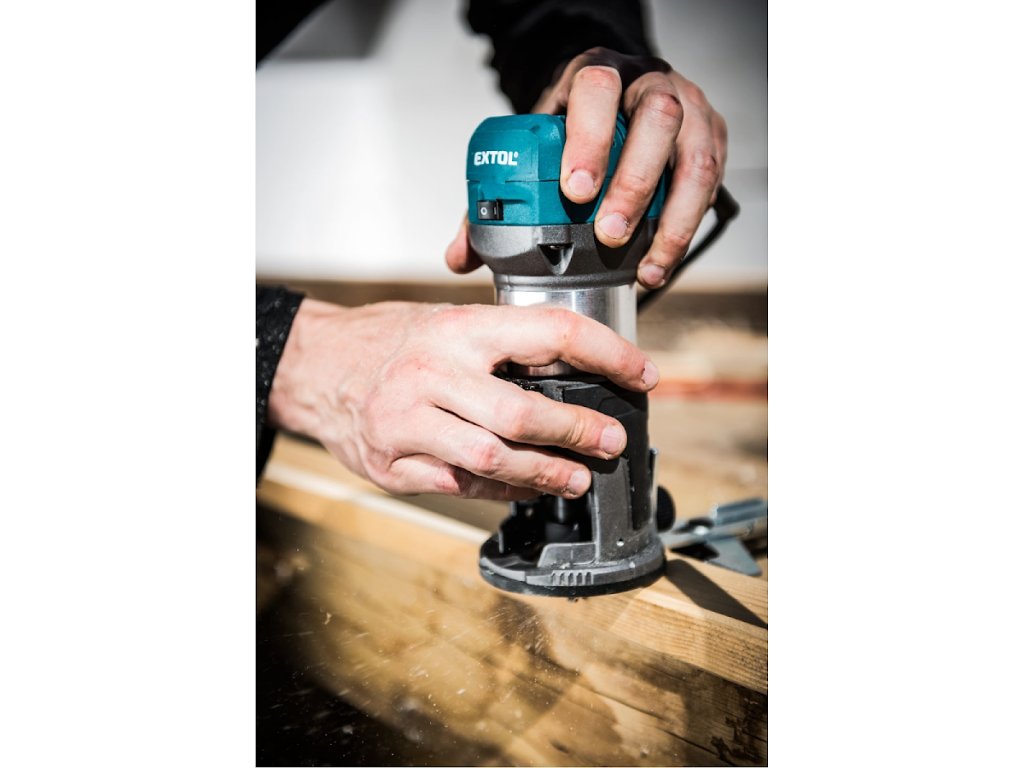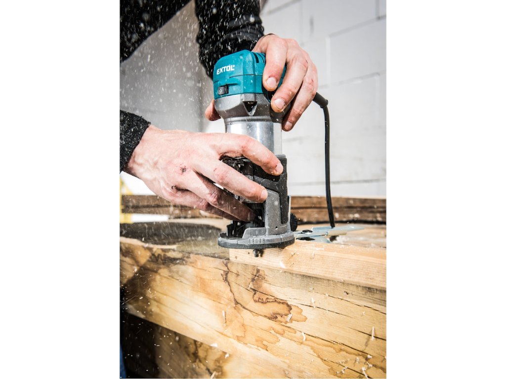 Glodalica je dizajnirana za glodanje rubova, profila, rupa u drvu različitih oblika, ovisno o obliku korištenog rezača. Glodalica može raditi s rezačima s drškom od 6 i 8 mm. Srce glodalice je snažan motor od 710 W s kontrolom brzine u rasponu od 13.000 - 33.000 / min, što vam omogućuje podešavanje brzine prema vrsti materijala. Također je opremljen elektroničkom kontrolom brzine, koja mu omogućuje održavanje konstantne brzine čak i pod opterećenjem, te funkcijom "mekog pokretanja" za glatko pokretanje bez udaraca. Za precizan rad, baza za uranjanje opremljena je graničnikom dubine s mogućnošću preciznog pomaka u redoslijedu desetina milimetra. Kada radite s tvrdim drvom, možete koristiti čep kupole kako biste podijelili mljevenu dubinu na nekoliko slojeva i uklonili ih jedan po jedan.
