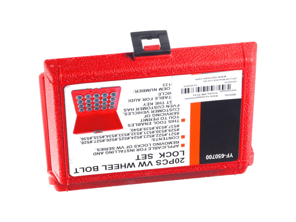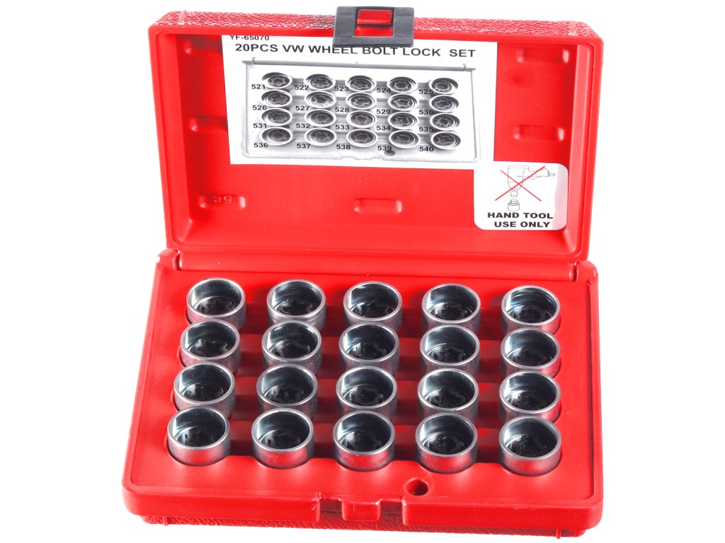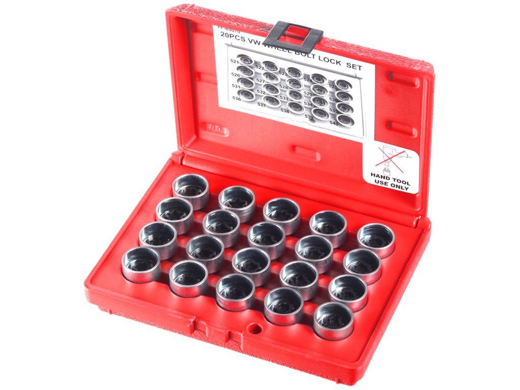 Može se koristiti za montažu i uklanjanje sigurnosnih vijaka i matica kotača VW automobila. Vrsta privitaka: 521; 522; 523; 524; 525; 526; 527; 528; 529; 530; 531; 532; 533; 534; 535; 536; 537; 538; 539; 540. Isporučuje se u plastičnoj kutiji.