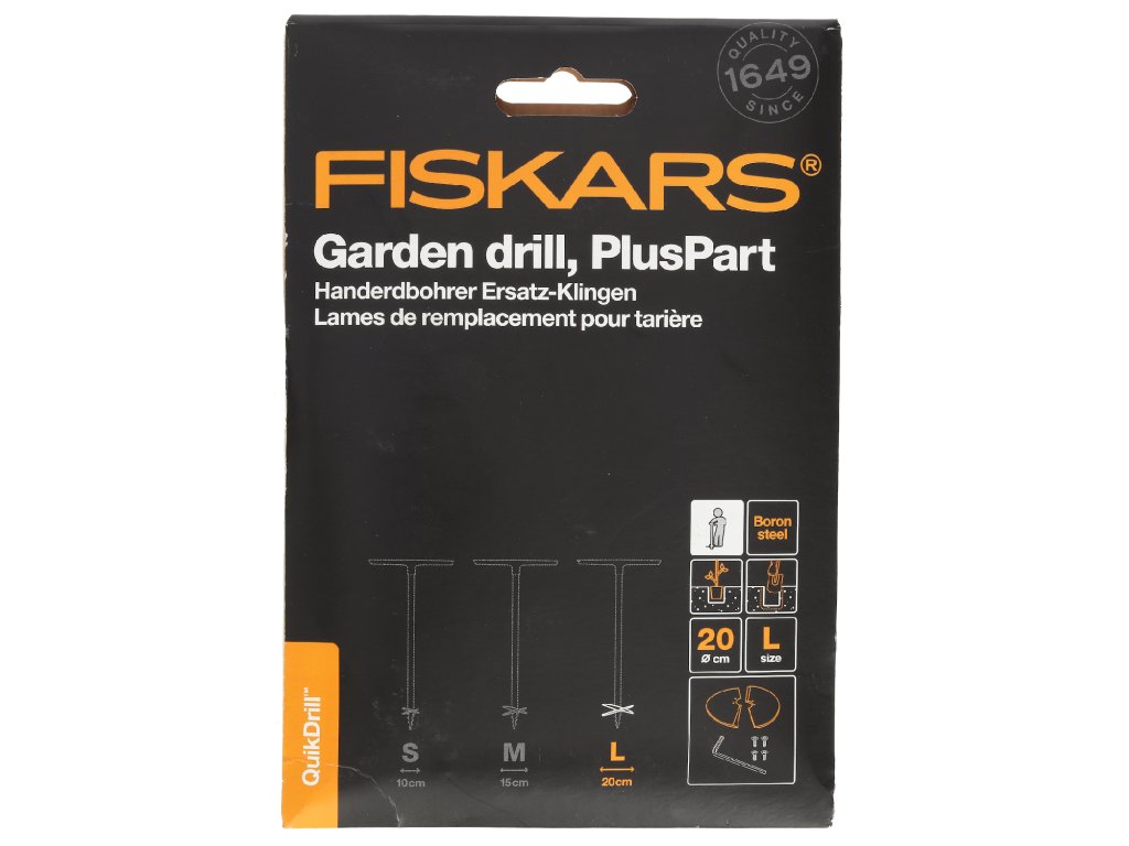 Fiskars QuikDrill™ zamjenjive oštrice za QuikDrill svrdla za zemlje QuikDrill™ za precizno dubinsko bušenje tla, omogućujući vam da jednom bušilicom radite razne vrtne poslove. Oštrice se mogu pričvrstiti na bilo koju ručku Fiskars QuikDrill™. Promjer oštrice 20 cm. Izvorni Fiskars broj: 134737.